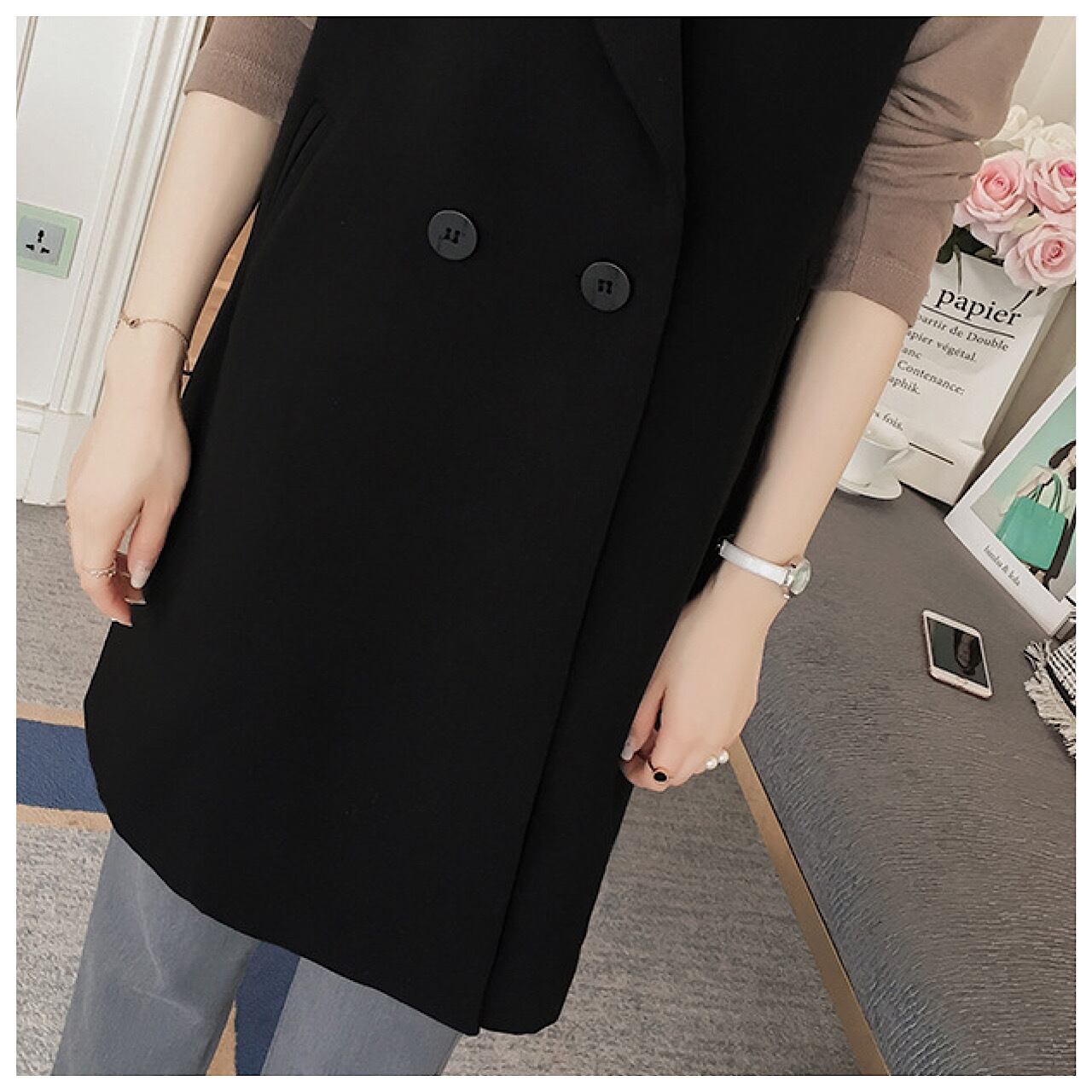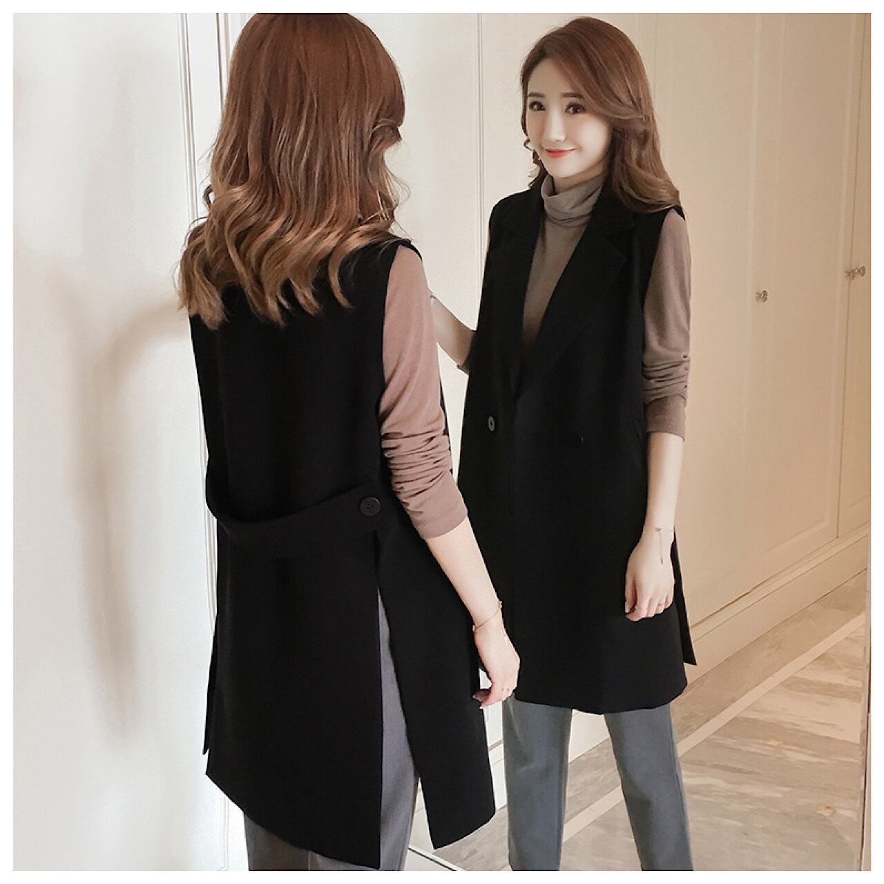 秋のスーツ韓国 バージョン ジレ レディース セットアップ 大きいサイズ ミディ丈 秋冬コーデ スーツ 薄手 上着 襟 おすすめ オフィスカジュアル 合わせ方 可愛い 着こなし 30代 40代 50代 OU-051KMY