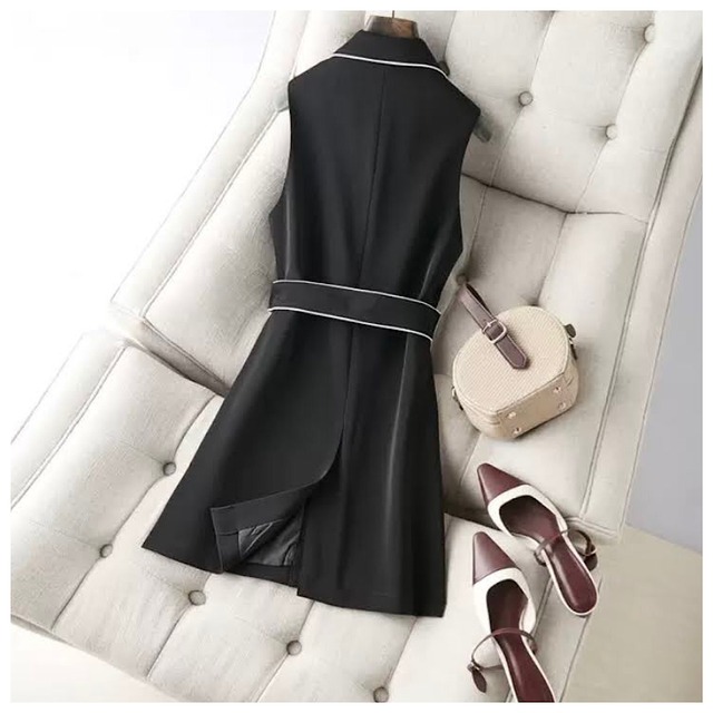 カジュアルミディアム ロングベスト秋の新しい白い縁取りのコントラストカラーのベスト ジレ レディース セットアップ 大きいサイズ 秋冬コーデ スーツ 薄手 上着 襟 おすすめ オフィスカジュアル 合わせ方 可愛い 着こなし 30代 40代 50代 OU-063KMY