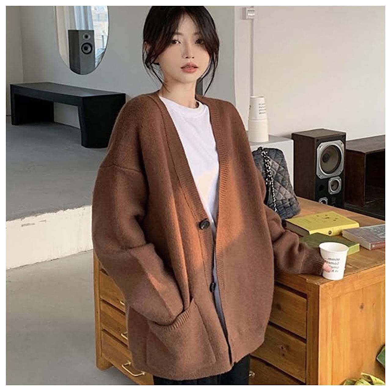 デザイン秋冬 シーズン V ネック ニット ソフト ワックス ジャケット カーディガン レディース ゆったり 大きいサイズ 長袖 韓国 コーデ きれいめ 襟 厚手 薄手 かわいい 着こなし 人気 ミドル丈 コーデ 30代 40代 50代 TP-017KMY