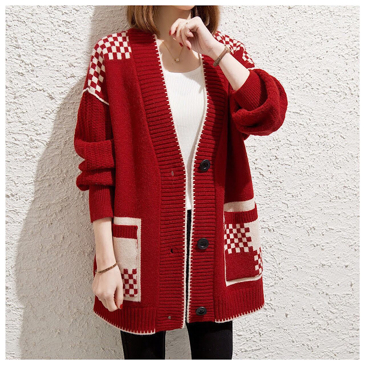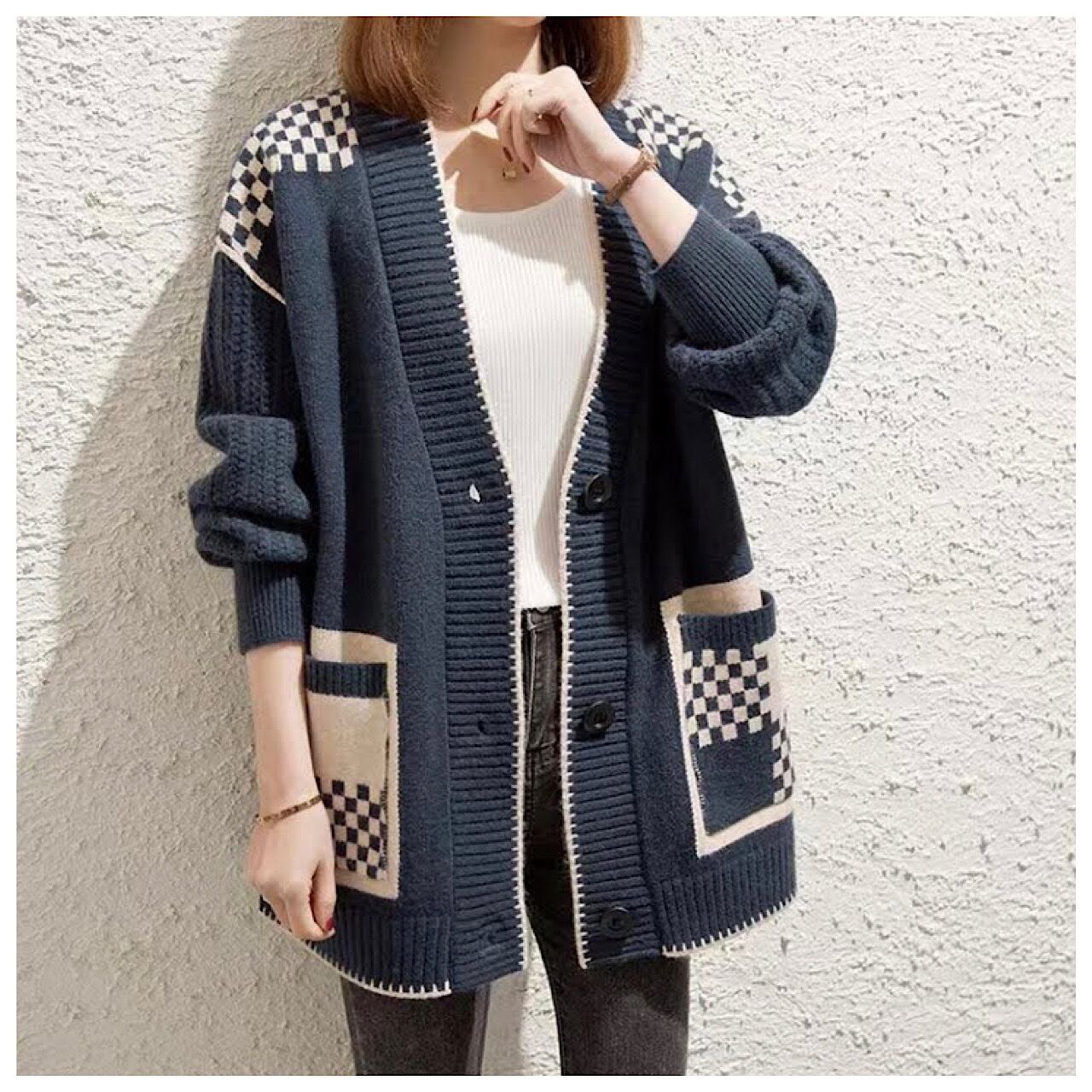 ステッチ チェックニット セーター コート 5色展開 スタイル トレンディ 秋冬 新作 オールマッチ 韓国 優しい ミドル丈 セーター カーディガントップ カーディガン 秋冬 レディース ゆったり 大きいサイズ 長袖コーデ きれいめ 襟 厚手 薄手 かわいい 柄 着こなし 人気 コーデ 30代 40代 50代 TP-031KMY