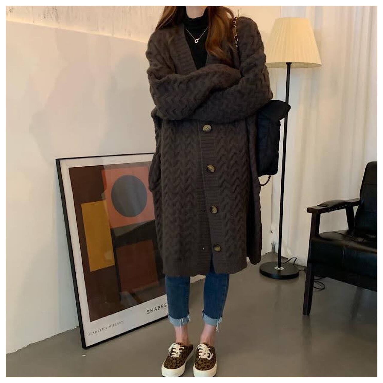 ツイスト ニット カーディガン ジャケット オールマッチ ゆったり 厚手 ロング アウターセーター 秋冬 レディース ゆったり 大きいサイズ 長袖 韓国 コーデ きれいめ 襟 厚手 薄手 かわいい 柄 着こなし 人気 コーデ 30代 40代 50代 TP-032KMY
