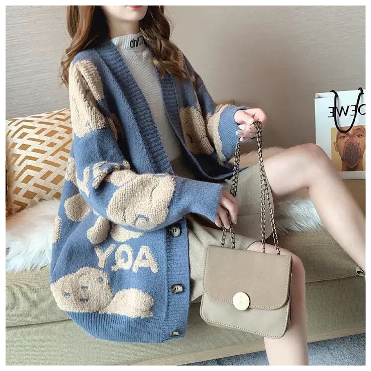 セーターコート秋冬 新作ゆったりニットカーディガン レディース 厚手 ゆったり 大きいサイズ 長袖 韓国 コーデ きれいめ 襟 かわいい 柄 着こなし 人気 ミドル丈 コーデ 30代 40代 50代 TP-035KMY