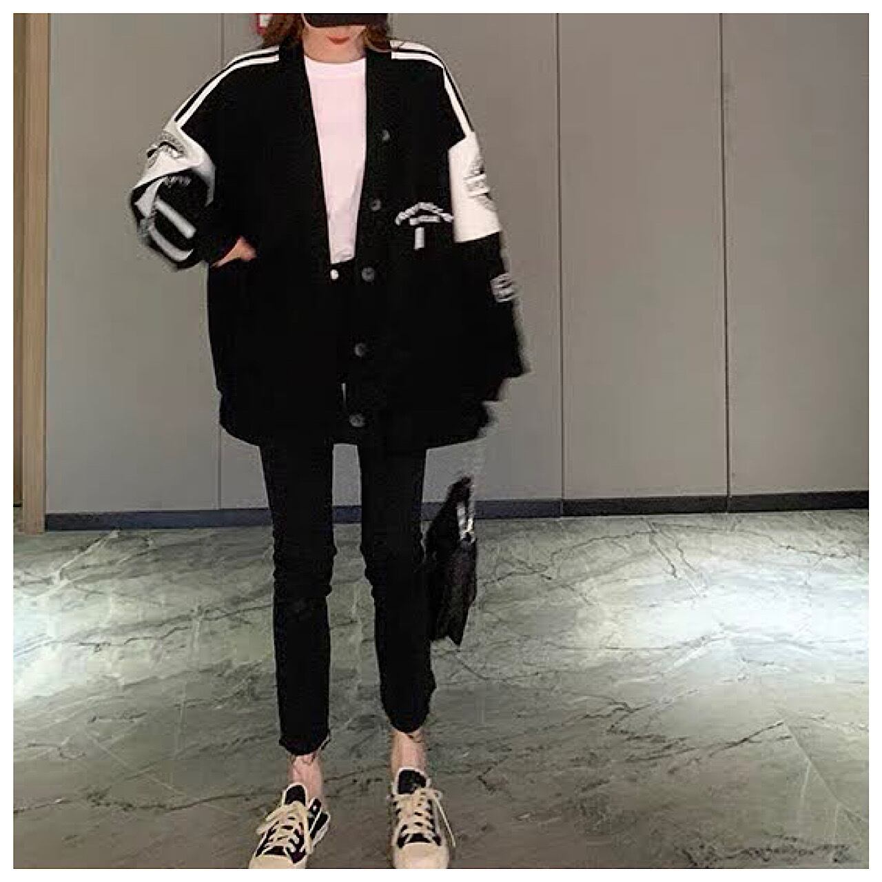プラス サイズ セーターコート シングル ルーズ スポーツ 野球 ユニフォーム カーディガン 秋冬 レディース ゆったり 大きいサイズ 長袖 韓国 コーデ きれいめ 襟 厚手 薄手 かわいい 柄 着こなし 人気 ミドル丈 コーデ 30代 40代 50代 TP-036KMY