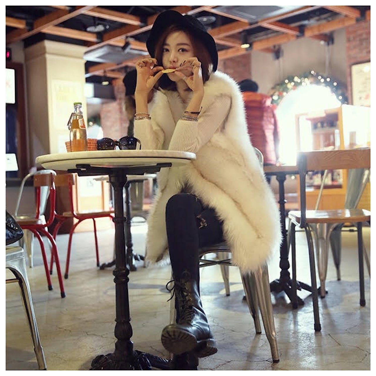 ラウンドネック ミドル丈 ファーベスト4色×6サイズ レディース 大きいサイズ コーデ 秋冬 人気色 合わせ方 エレガント おすすめ 韓国 着痩せ 丈 大人 デート おしゃれ 30代 40代 50代 OU-100KMY