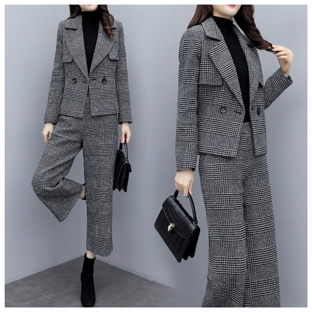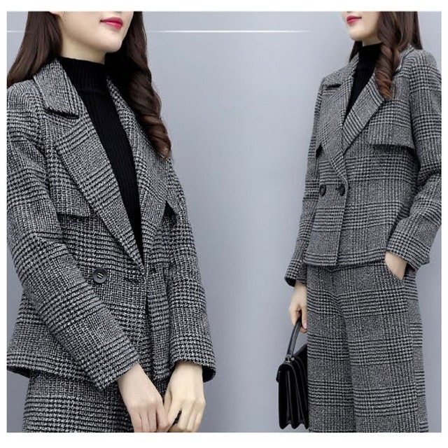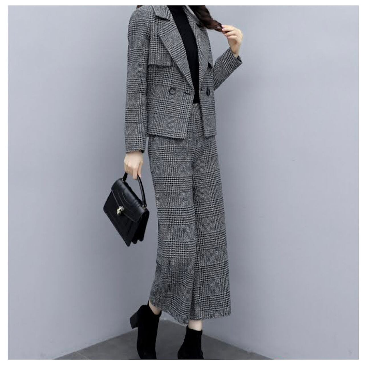 ツー ピース スーツ ワイド チェック柄 カジュアル ファッションスーツ 新作セットアップ レディース 秋冬 カジュアル 韓国 おしゃれ おすすめ きれいめ エレガント かわいい 着こなし 大きいサイズ 卒業式 入園式 七五三 結婚式 フォーマル ママセットアップ ゆったり 30代 40代 50代 ST-015KMY