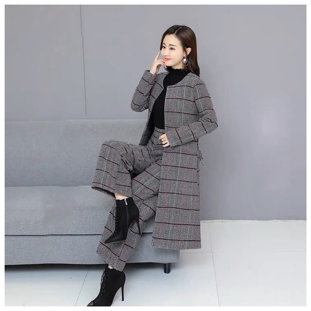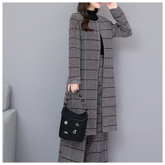 ワイドレッグパンツ ロング チェック 柄 セットアップ レディース 秋冬 カジュアル 韓国 おしゃれ おすすめ きれいめ エレガント かわいい 着こなし 大きいサイズ 卒業式 入園式 七五三 結婚式 フォーマル ママセットアップ ゆったり 30代 40代 50代 ST-051KMY