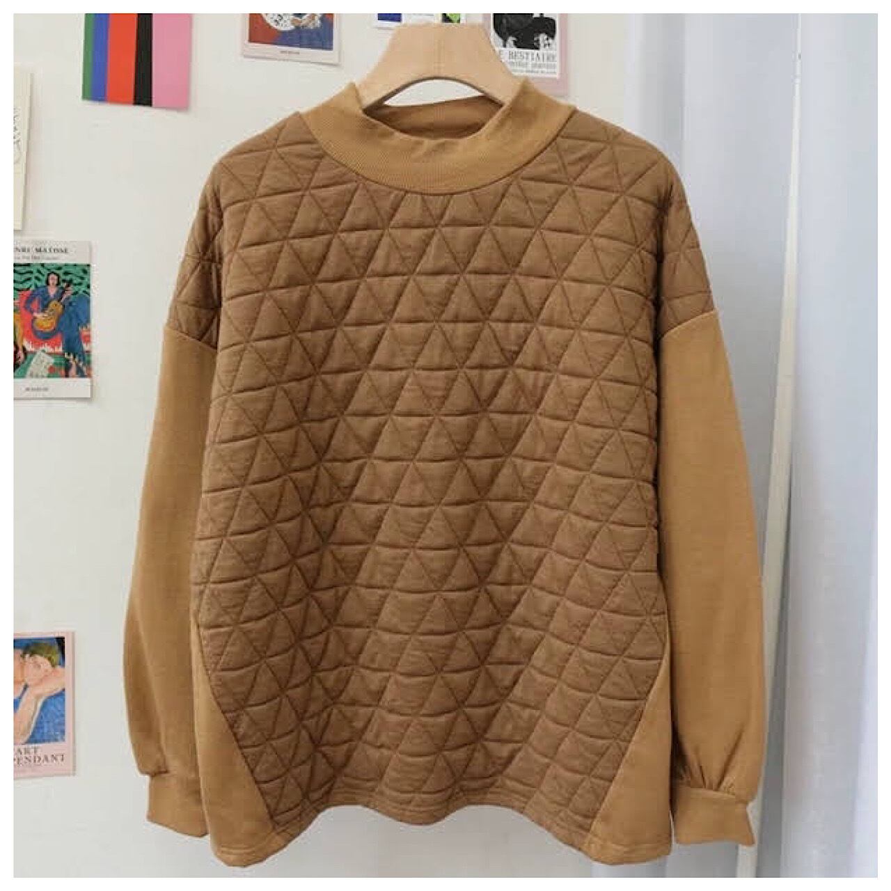 ラウンド ネック フリース セーターのステッチとキルティング シンプル カラー トップ プルオーバー レディース きれいめ 韓国 人気 コーデ 軽量 大きいサイズ おすすめ おしゃれ 暖かい 秋冬 すっきり かわいい トレンド ゆったり 30代 40代 50代 TP-105KMY