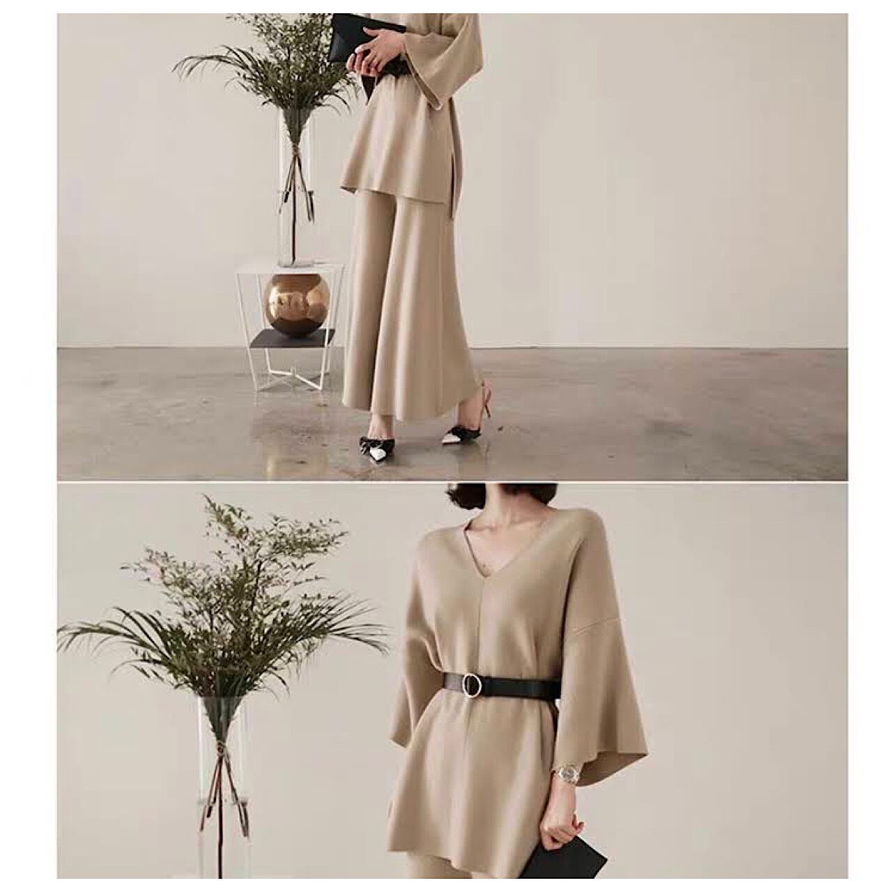 ファッション スーツ ニットウェア スリム セーター ワイド レッグ パンツ セットアップ レディース ニットスーツ 秋冬 韓国 カジュアル プルオーバー ワイドパンツ スーツ ゆったり 上下セット 2点セット 着痩せ おしゃれ きれいめ 大人 着回し 体型カバー 通勤 オフィス 入学式 卒業式 30代 40代 50代 ST-066KMY