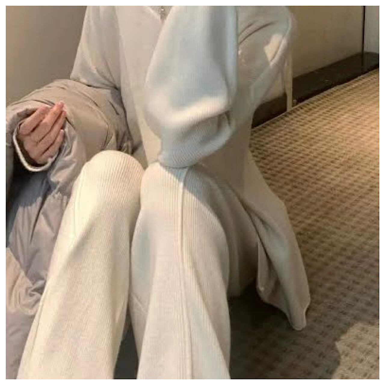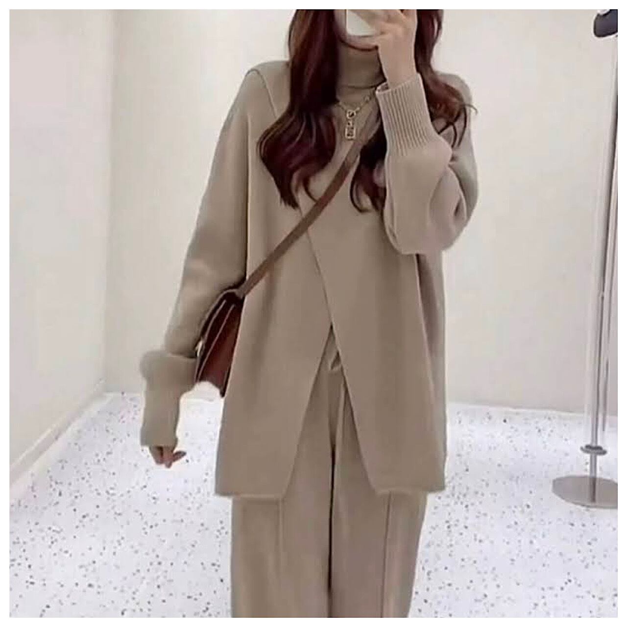 秋冬 新作 韓国 ハイネック スリット セーター ゆったり ワイド レッグ パンツニット ツー ピース スーツ セットアップ レディース ニットスーツ カジュアル プルオーバー ワイドパンツ スーツ 上下セット 2点セット 着痩せ おしゃれ きれいめ 大人 着回し 体型カバー 通勤 オフィス 入学式 卒業式 30代 40代 50代 ST-080KMY
