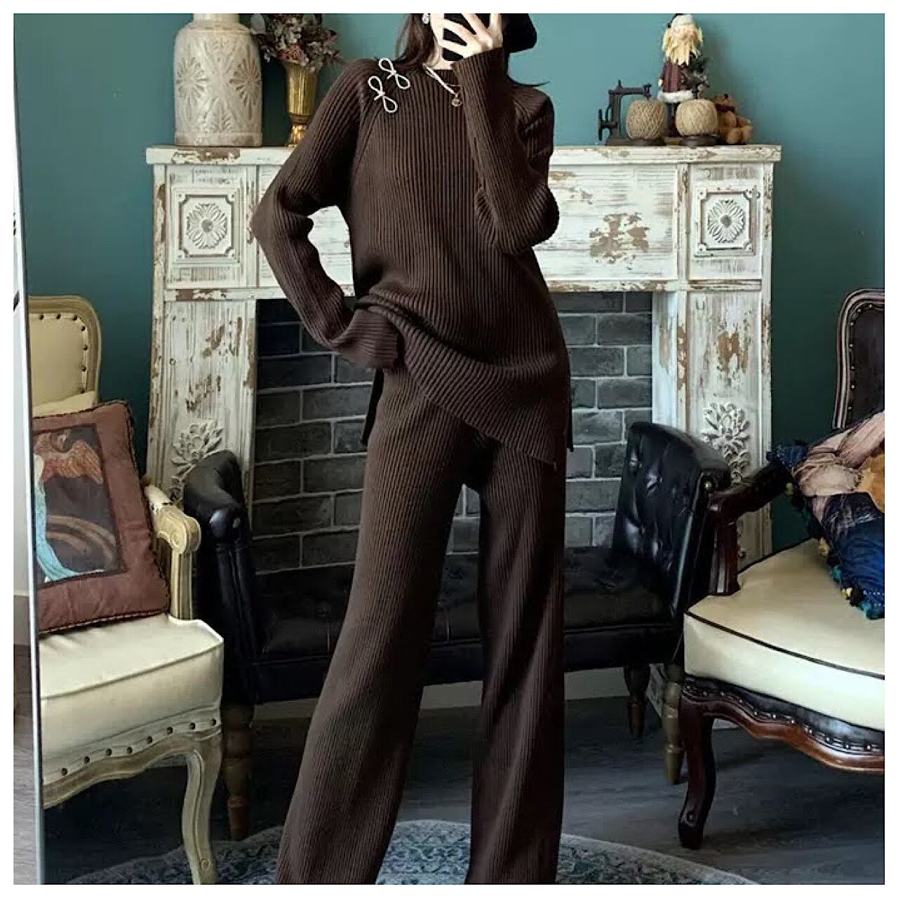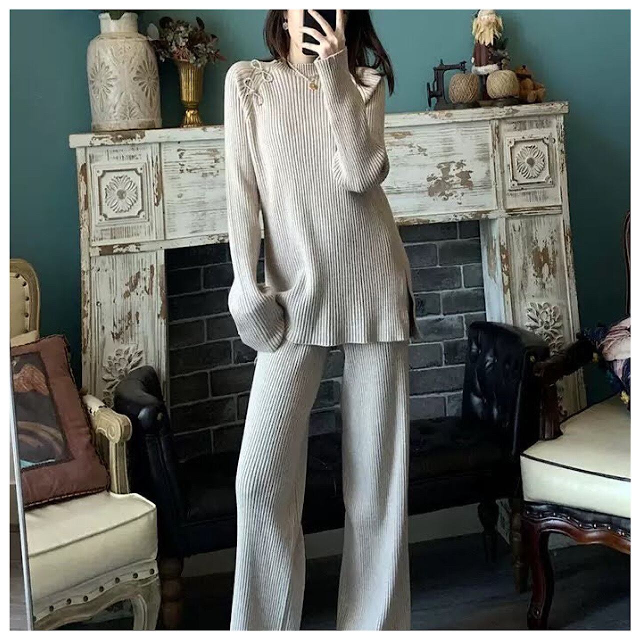ツー ピース セット スタイル ネット ニット ワイド レッグ パンツ セーター カバーリング スーツ セットアップ レディース ニットスーツ 秋冬 韓国 カジュアル プルオーバー ワイドパンツ スーツ ゆったり 上下セット 2点セット 着痩せ おしゃれ きれいめ 大人 着回し 体型カバー 通勤 オフィス 入学式 卒業式 30代 40代 50代 ST-098KMY