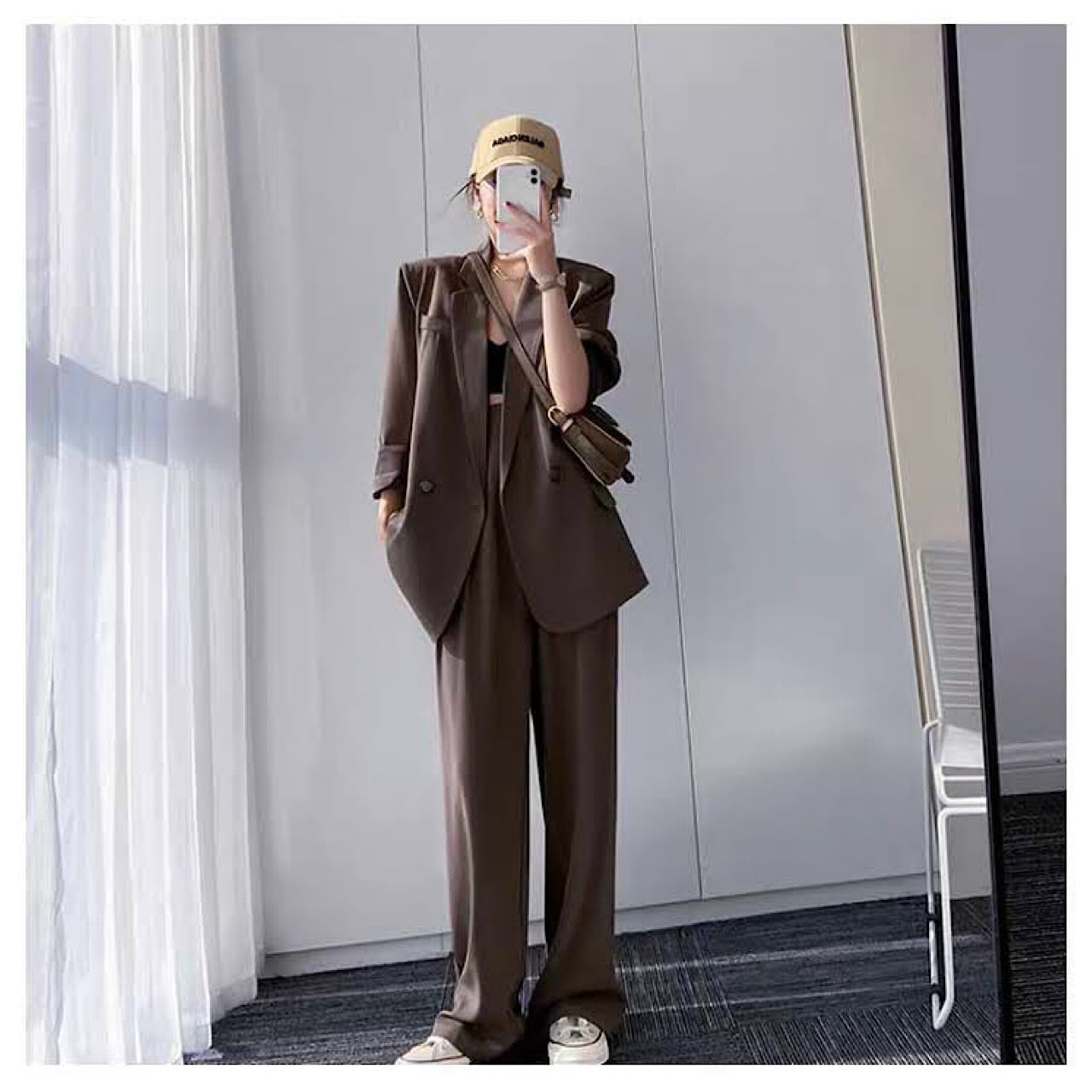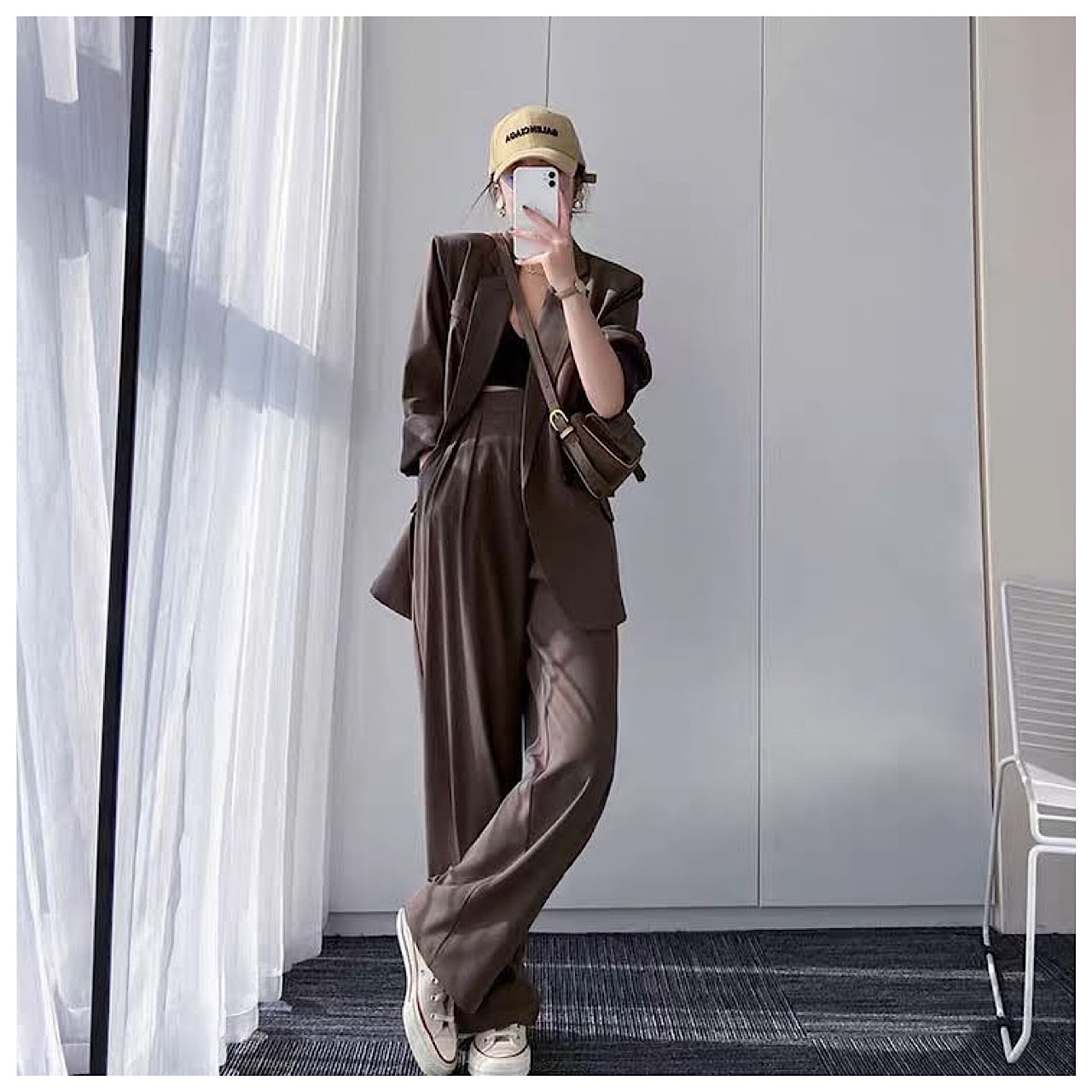 ジャケット ゆったり 薄手 ワイド レッグ パンツ ファッション ブラウン ツー ピース セットアップ レディース きれいめ カジュアル かっこいい 大きいサイズ 秋冬 おしゃれ 着痩せ 着回し コーデ ゆったり 上下 人気 2点セット パンツ スーツ 韓国 入学式 卒業式 フォーマル 30代 40代 50代 ST-123KMY