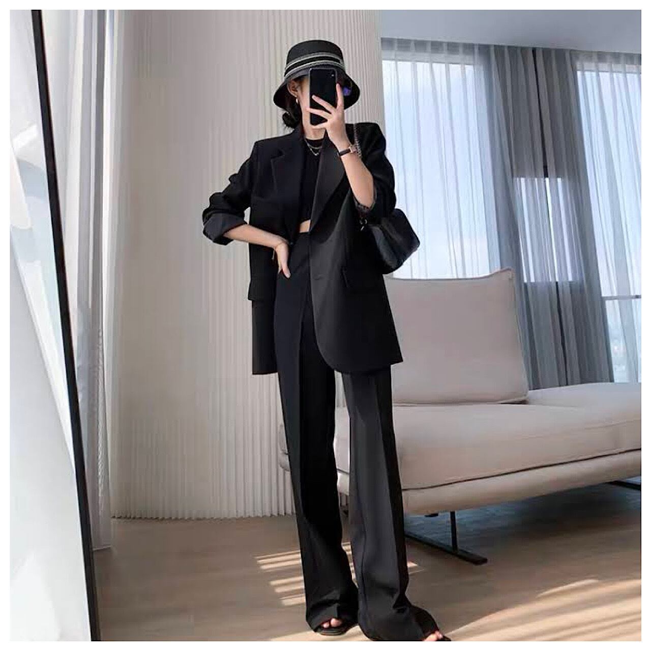 スーツ 女性 新作 ルーズ ファッション グレーワイド レッグ パンツ 2 ピース セットアップ レディース きれいめ カジュアル かっこいい 大きいサイズ 秋冬 おしゃれ 着痩せ 着回し コーデ ゆったり 上下 人気 2点セット パンツ スーツ 韓国 入学式 卒業式 フォーマル 30代 40代 50代 ST-136KMY