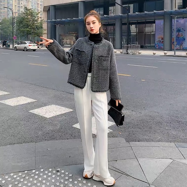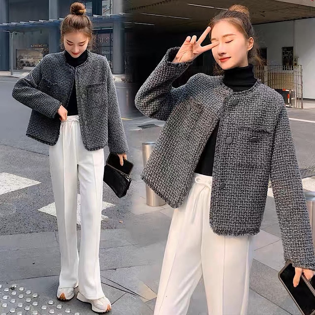 ショート グレー ハイエンド カジュアル ツイード スーツ ジャケット レディース 着こなし 着回し おしゃれ コーデ 大きいサイズ おすすめ 秋冬 韓国 ゆったり ノーカラー 暖かい 入学式 卒業式 入園式 卒園式 アウター 人気 フォーマル ママスーツ 30代 40代 50代 OU-214KMY