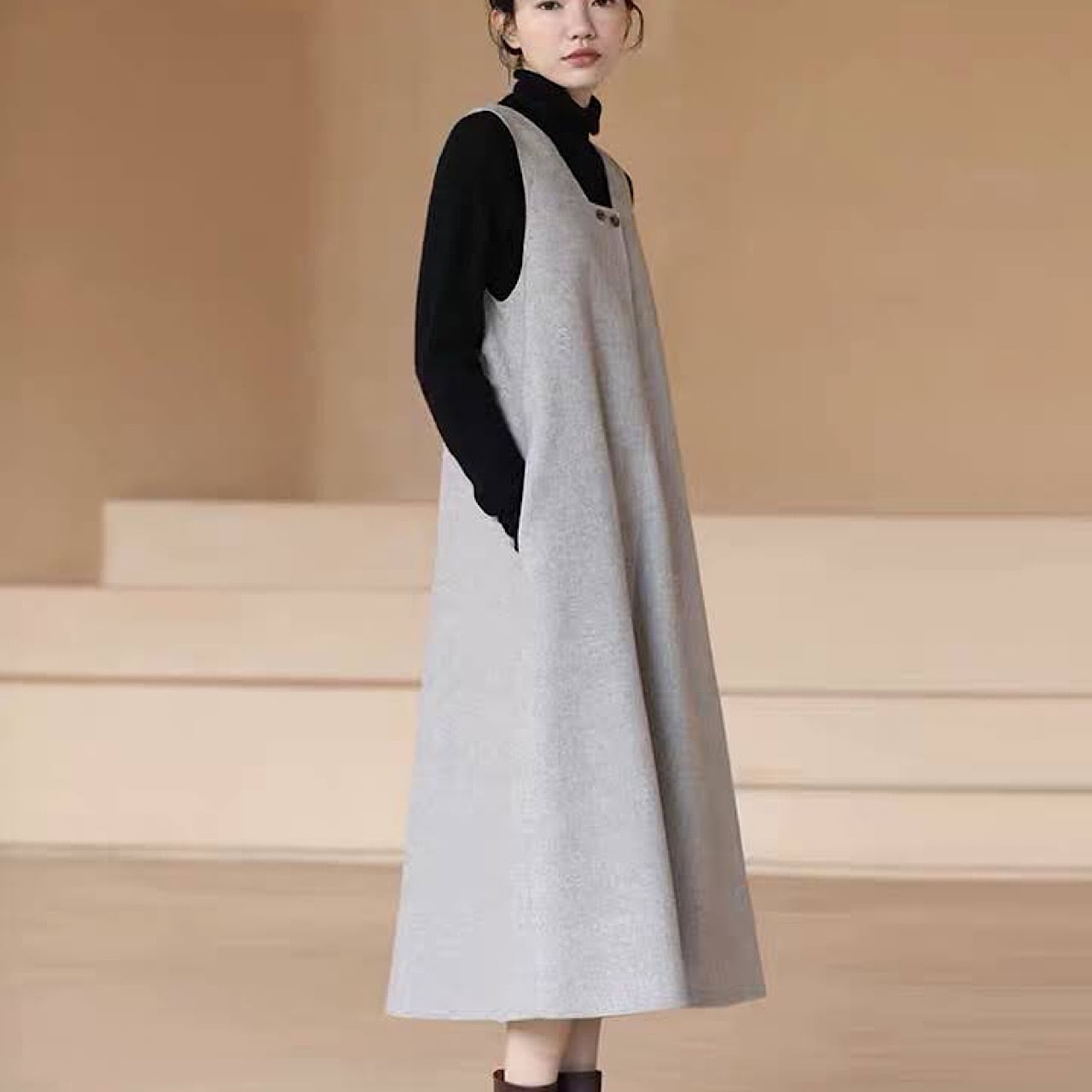 体型カバー力抜群!大人が着られるジャンパースカート