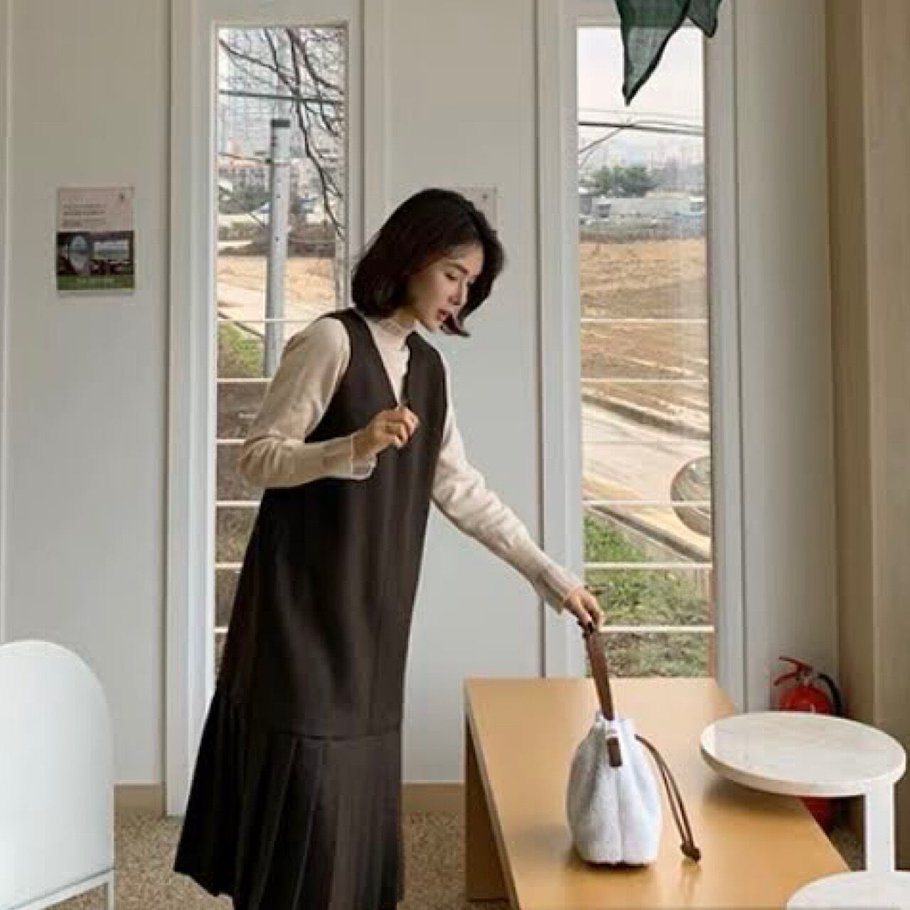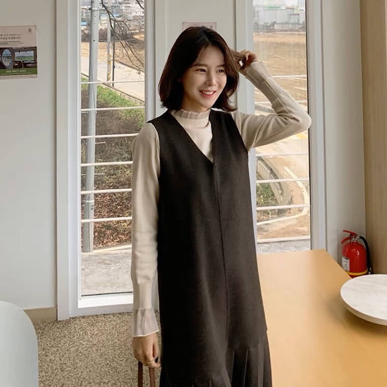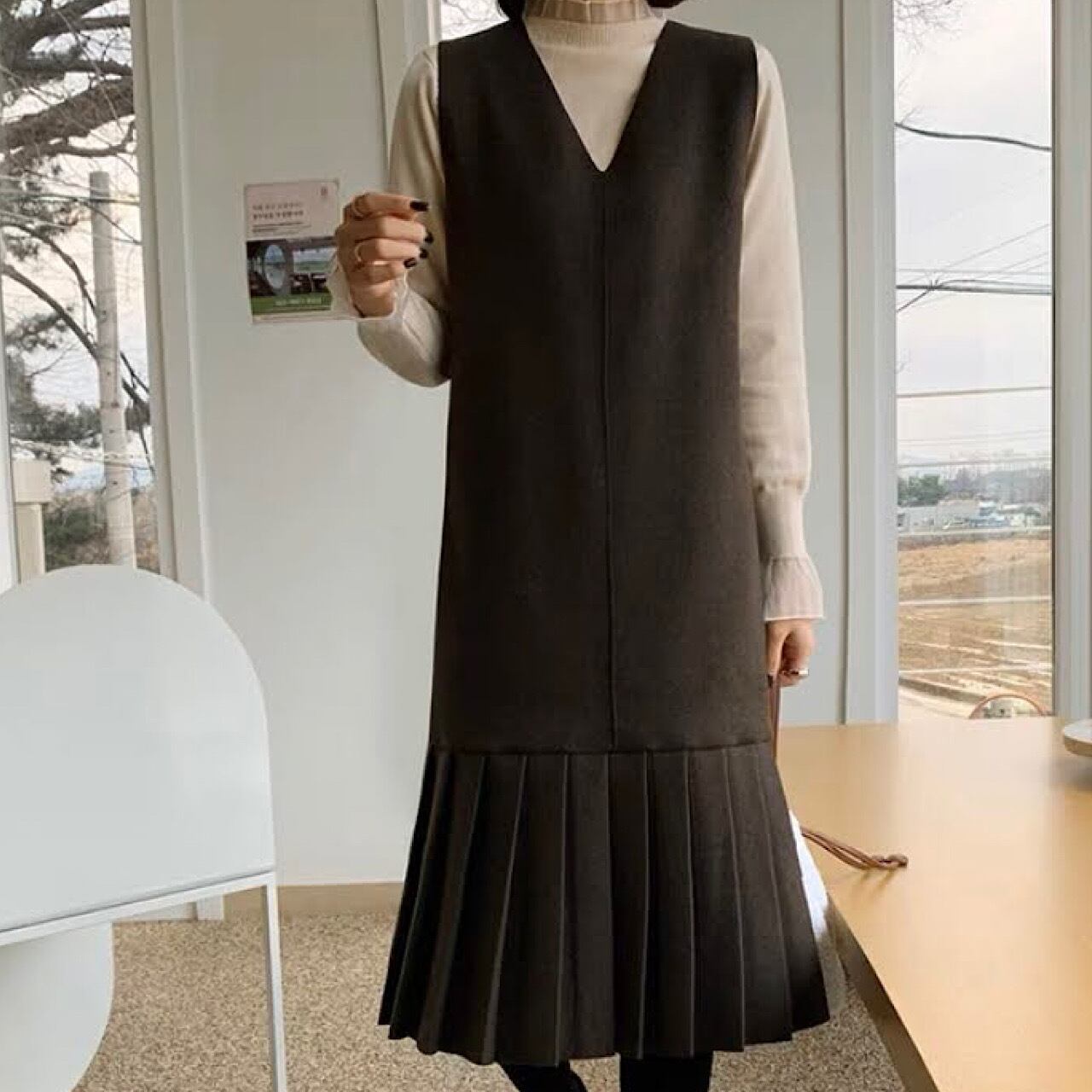 ストレッチ プリーツ ウール ベスト スカート ベスト サスペンダードレス 7サイズ 韓国 ジャンパースカート コーデ 秋冬 大人 大きいサイズ vネック レディース ブラウン スカート フレア ロングワンピース オールインワン 低身長 ツイード きれいめ エレガント かわいい カジュアル ロング丈 30代 40代 50代 OP-044KMY