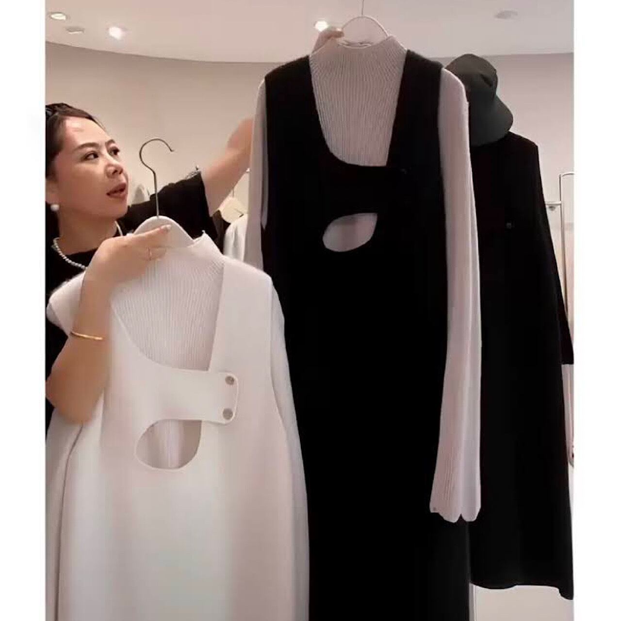 秋冬 新作 セットスーツ シャツドレス2点セット 韓国 ジャンパースカート コーデ 大人 大きいサイズ vネック レディース 黒 スカート フレア ロングワンピース オールインワン 低身長 きれいめ エレガント かわいい カジュアル ロング丈 マキシ丈 30代 40代 50代 OP-069KMY