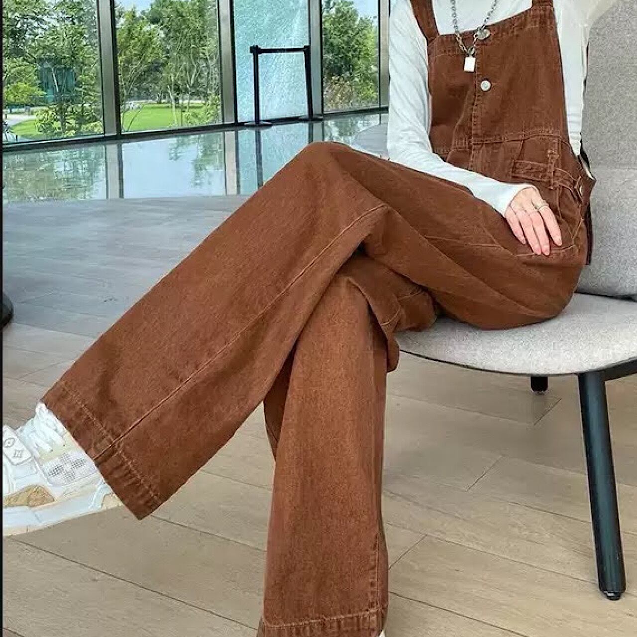 ハイウエスト ストレート デニム レトロ ブラウン 韓国 サロペット オーバーオール オールインワン デニム パンツ スカート 秋冬 大きいサイズ 大人 カジュアル ゆったり デニム 低身長 コーデ レディース 着こなし きれいめ おしゃれ かわいい 30代 40代 50代 AI-012KMY