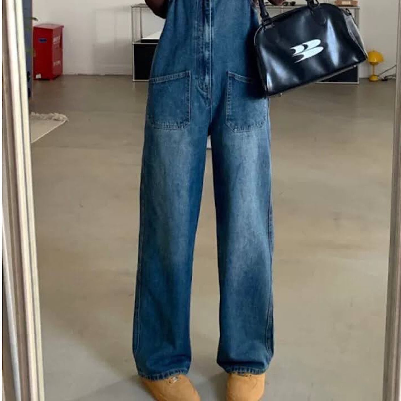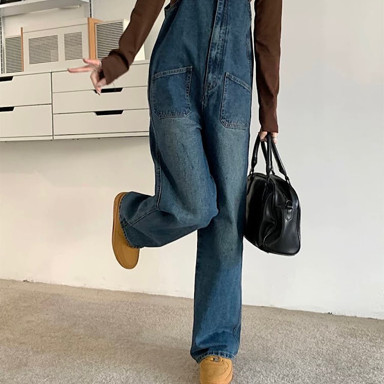 ブルーデニム 緩い ジャンプ スーツ ダーク ジッパー ストレート 丈 サロペット オーバーオール オールインワン デニム パンツ スカート 秋冬 大きいサイズ 大人 カジュアル ゆったり デニム 低身長 コーデ レディース 着こなし きれいめ おしゃれ かわいい 30代 40代 50代 AI-016KMY