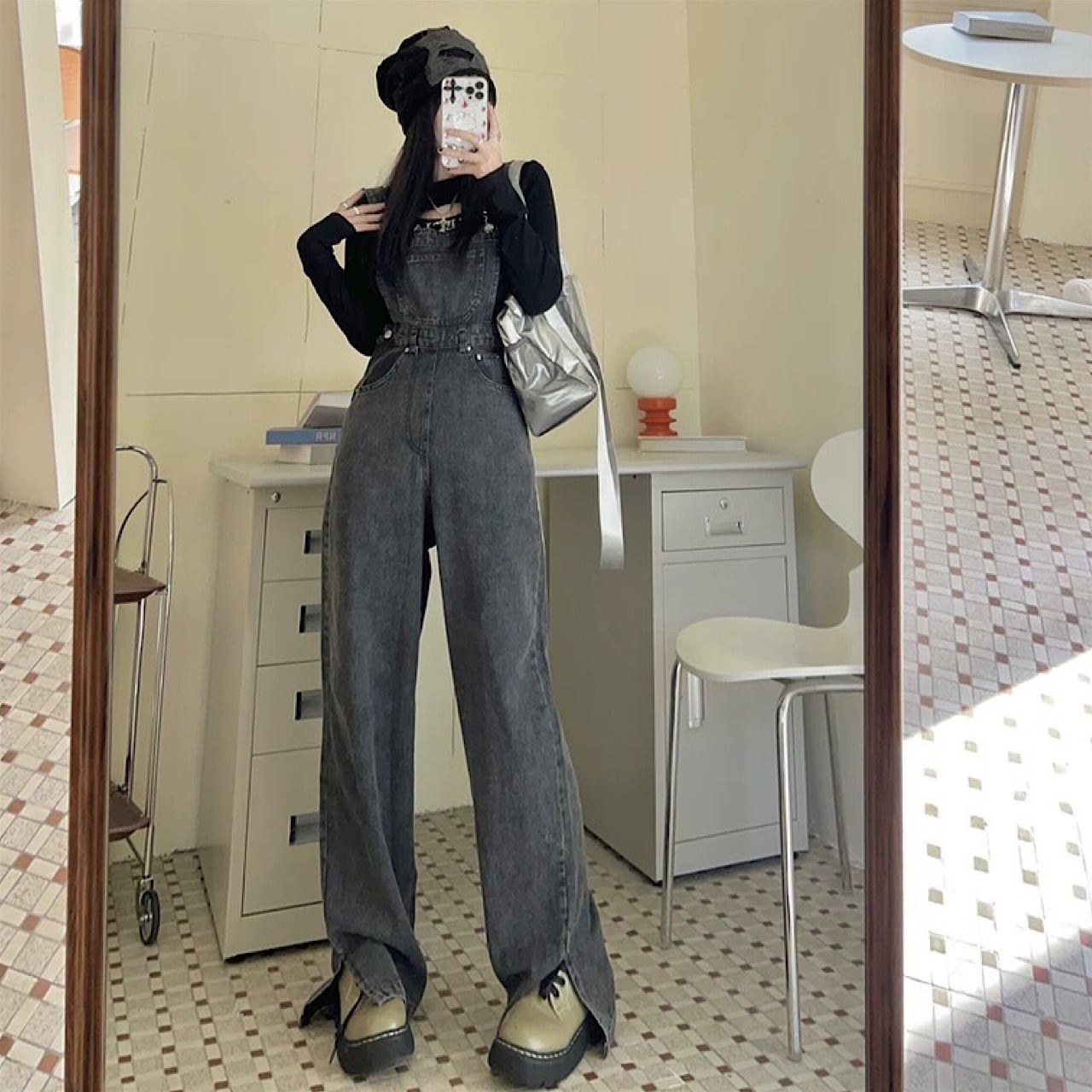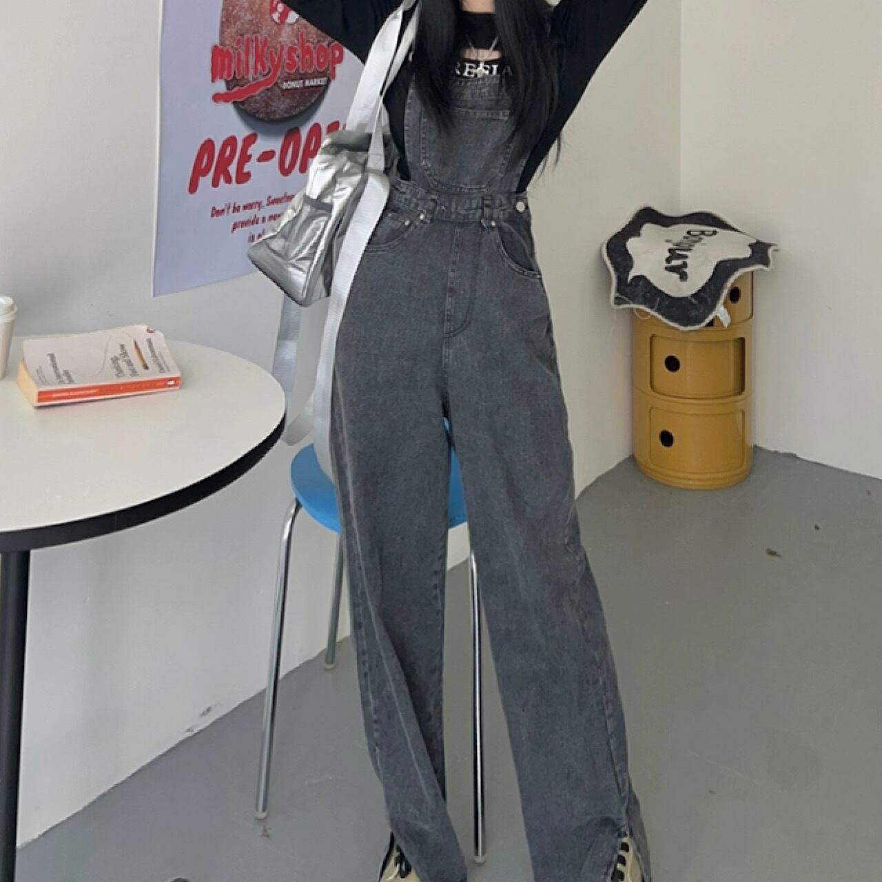 グレー デニム 緩い ワイド レッグ ジャンプ 8サイズ スーツ サロペット オーバーオール オールインワン デニム パンツ スカート 秋冬 大きいサイズ 大人 カジュアル ゆったり デニム 低身長 コーデ レディース 着こなし きれいめ おしゃれ かわいい 30代 40代 50代 AI-022KMY