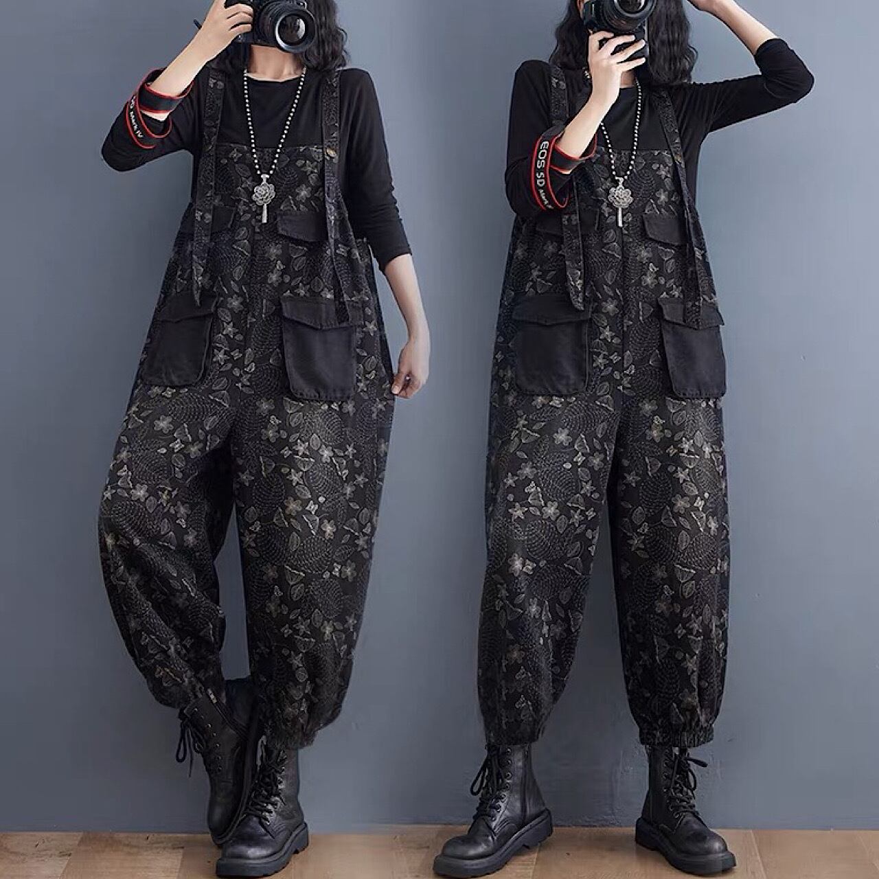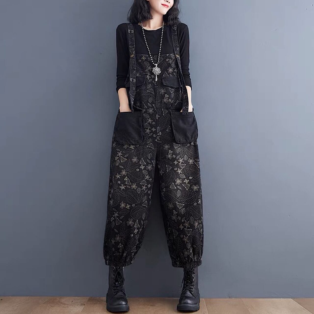 韓国バージョン プラス サイズ 緩い デニム サロペット オーバーオール オールインワン デニム パンツ スカート 秋冬 大きいサイズ 大人 カジュアル ゆったり デニム 低身長 コーデ レディース 着こなし きれいめ おしゃれ かわいい 30代 40代 50代 AI-032KMY