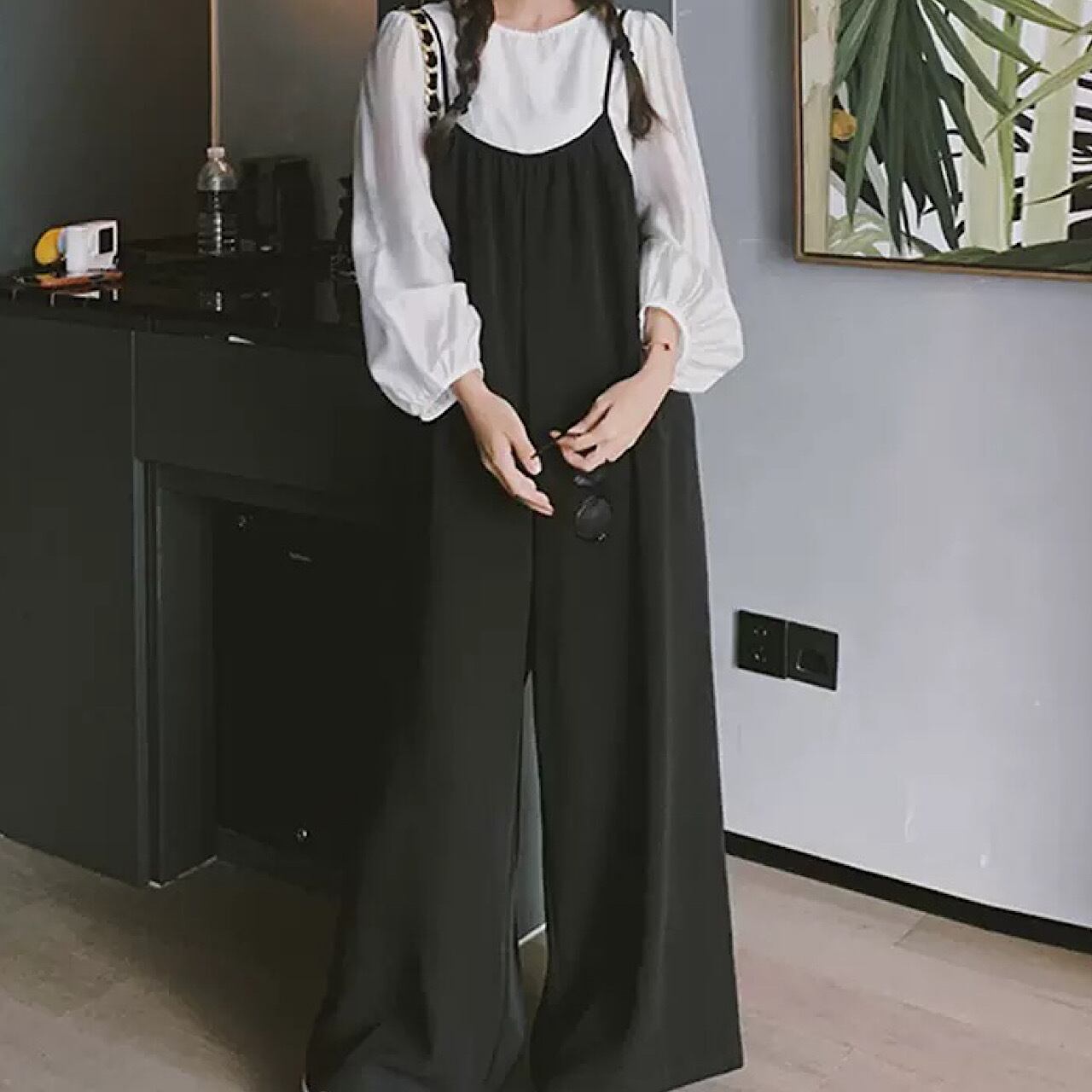 レトロ 韓国 スタイル ルーズ 薄い ワイド レッグ サロペット オーバーオール オールインワン デニム パンツ スカート 秋冬 大きいサイズ 大人 カジュアル ゆったり 低身長 コーデ レディース 着こなし きれいめ おしゃれ かわいい 30代 40代 50代 AI-039KMY