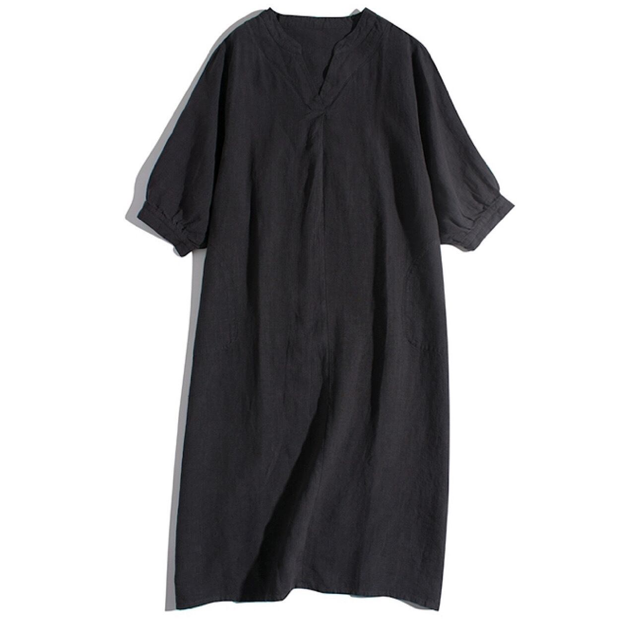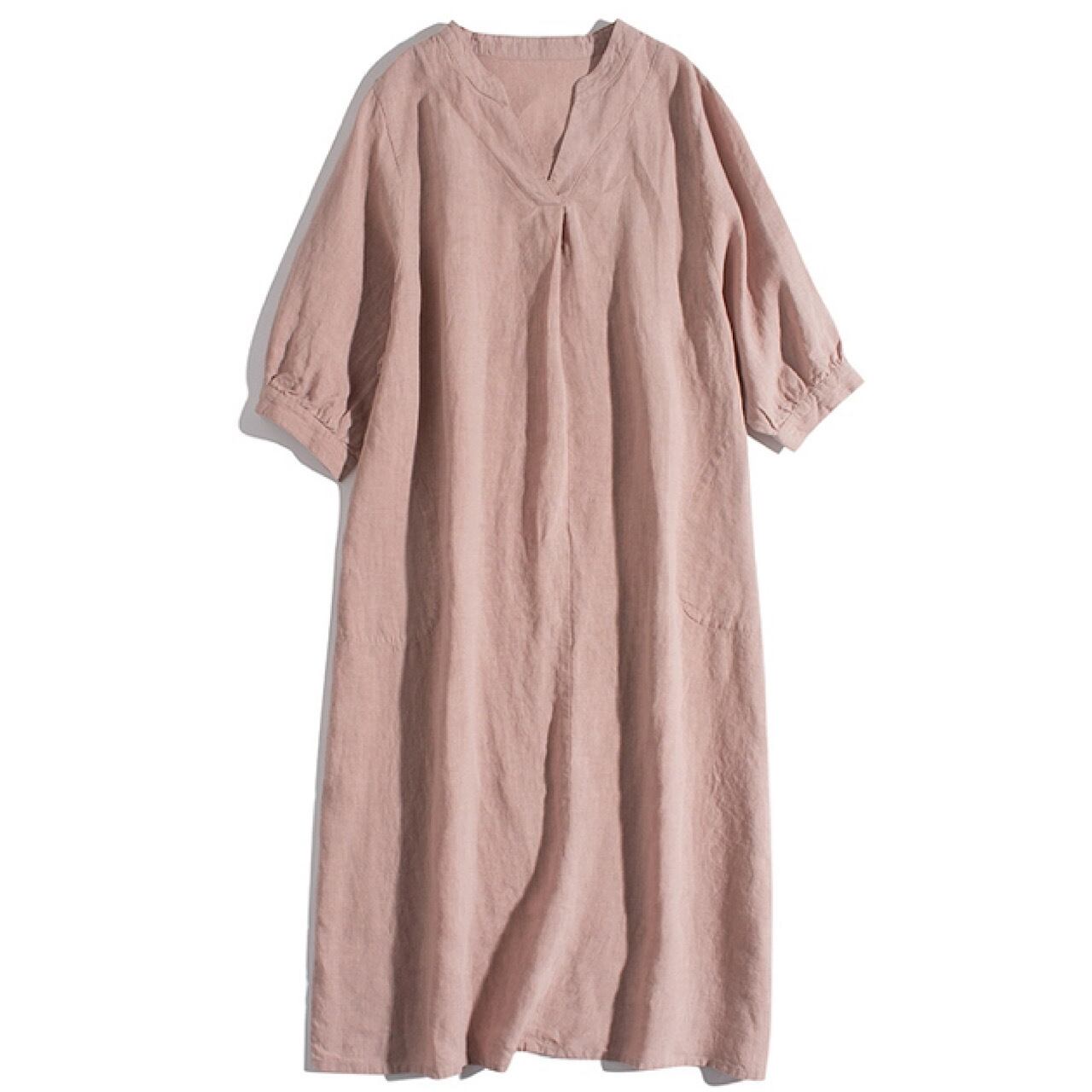 Vネック ゆったりスリム ロング スカート リネンワンピース きれいめ 大人 半袖 おすすめ カジュアル レディース 大きいサイズ 麻 上品 ゆったり シンプル 着回し 30代 40代 50代 OP-083KMY