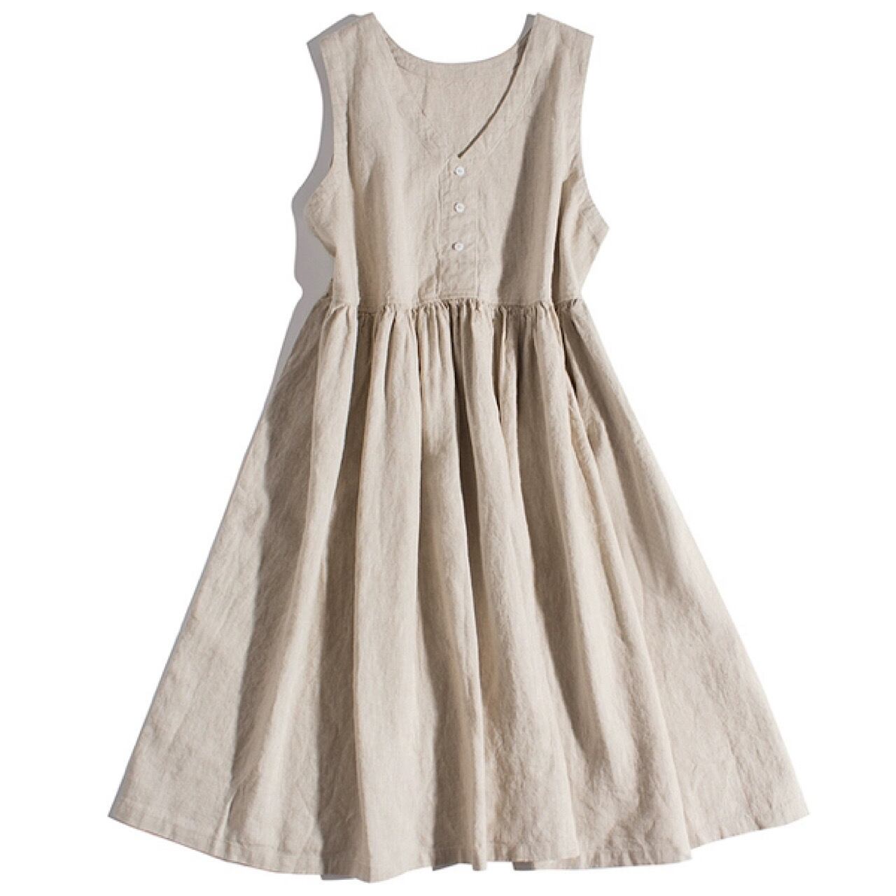 Vネック ベスト ピュアリネン ノースリーブ ジャンプ スーツ リネンワンピース きれいめ 大人 おすすめ ロング カジュアル レディース 大きいサイズ 麻 上品 ゆったり シンプル 着回し 30代 40代 50代 OP-085KMY