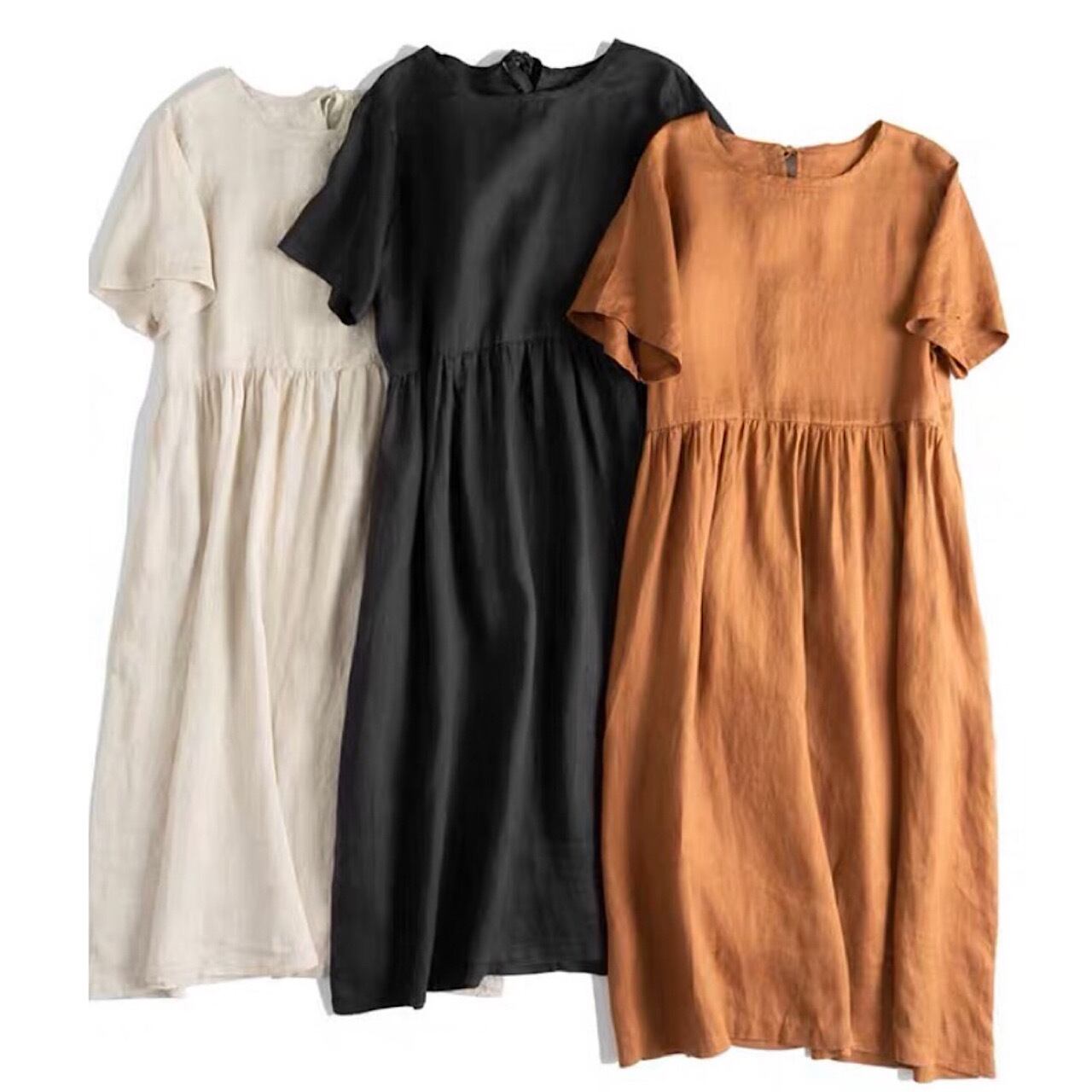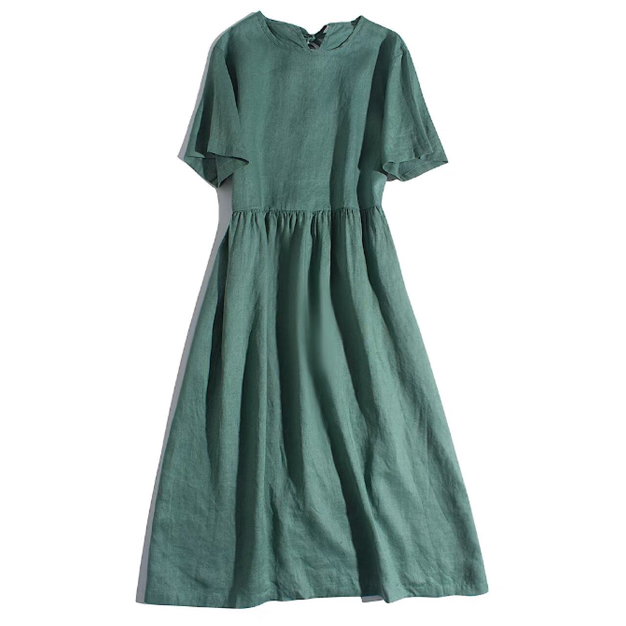 ハイエンド チクチクさせない 半袖 リネンワンピース 6色展開 きれいめ 大人 おすすめ ロング カジュアル レディース 大きいサイズ 麻 上品 ゆったり シンプル 着回し 30代 40代 50代 OP-086KMY