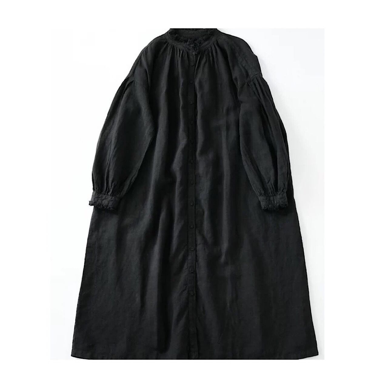 カジュアル スタイル 襟 カーディガン スリム ガウン スカート長袖 フルリネン リネンワンピース きれいめ 大人 おすすめ ロング レディース 大きいサイズ 麻 上品 ゆったり シンプル 着回し 30代 40代 50代 OP-091KMY