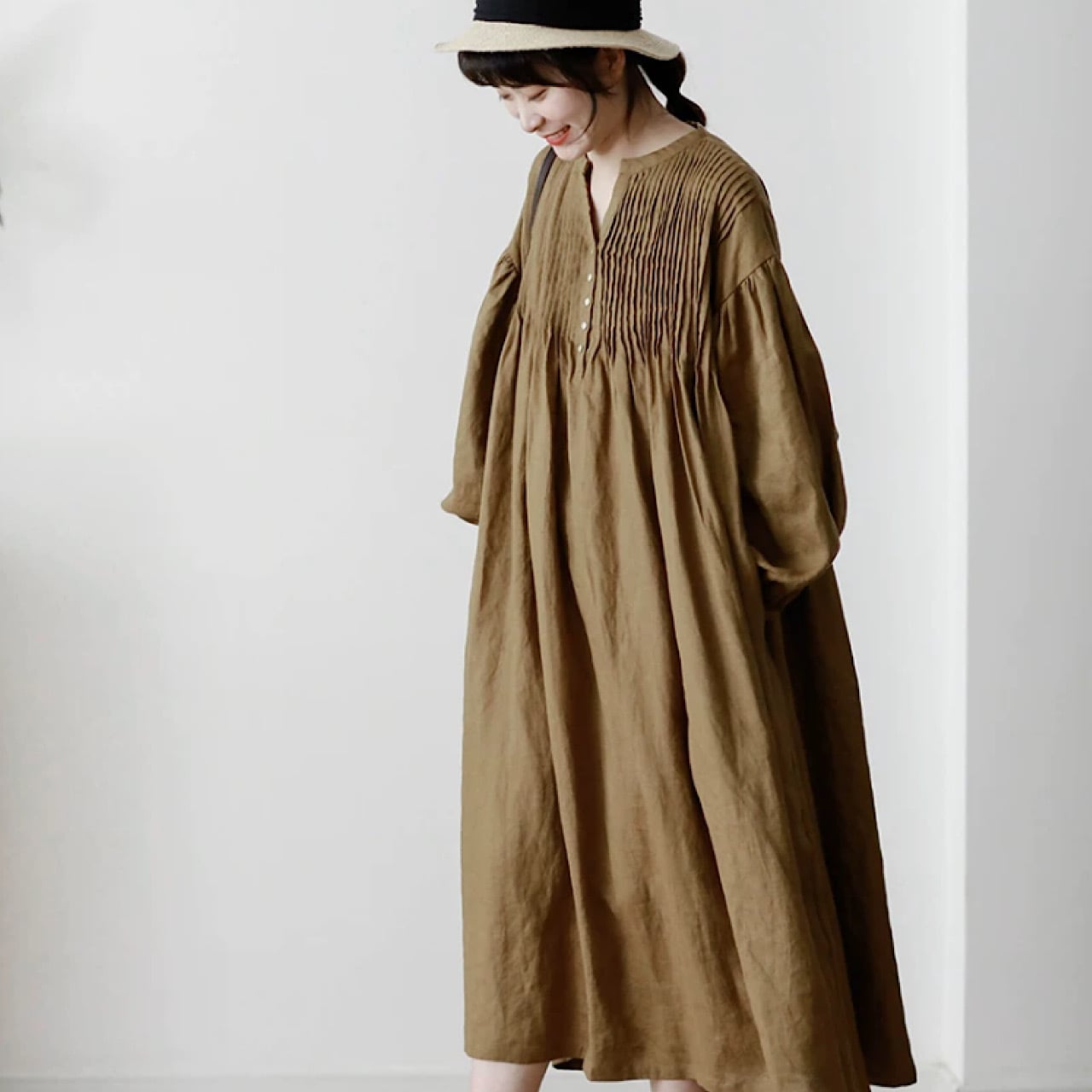リネン オルガン ドレス ロング ドレス リネンワンピース きれいめ 大人 おすすめ 長袖 ロング カジュアル レディース 大きいサイズ 麻 上品 ゆったり シンプル 着回し 30代 40代 50代 OP-101KMY