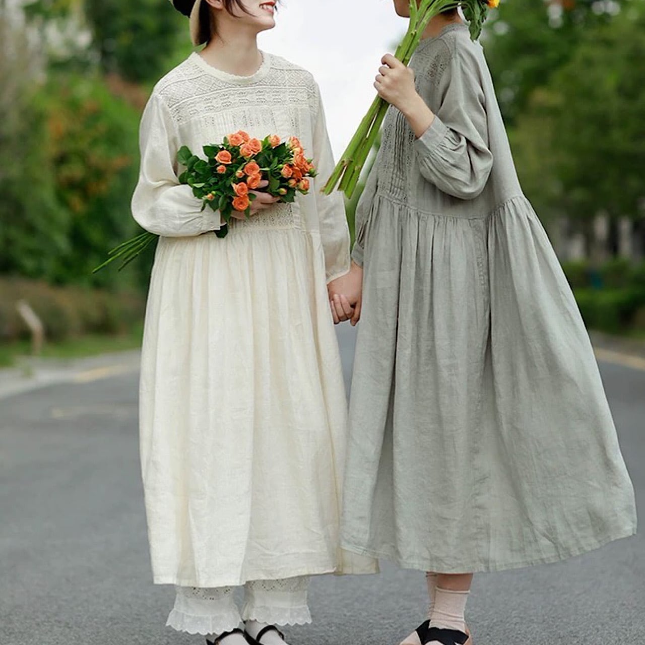 クラフトリネン レースカラードレス ルー ズ ミドル丈 スカート リネンワンピース きれいめ 大人 おすすめ 長袖 ロング カジュアル レディース 大きいサイズ 麻 上品 ゆったり シンプル 着回し 30代 40代 50代 OP-102KMY