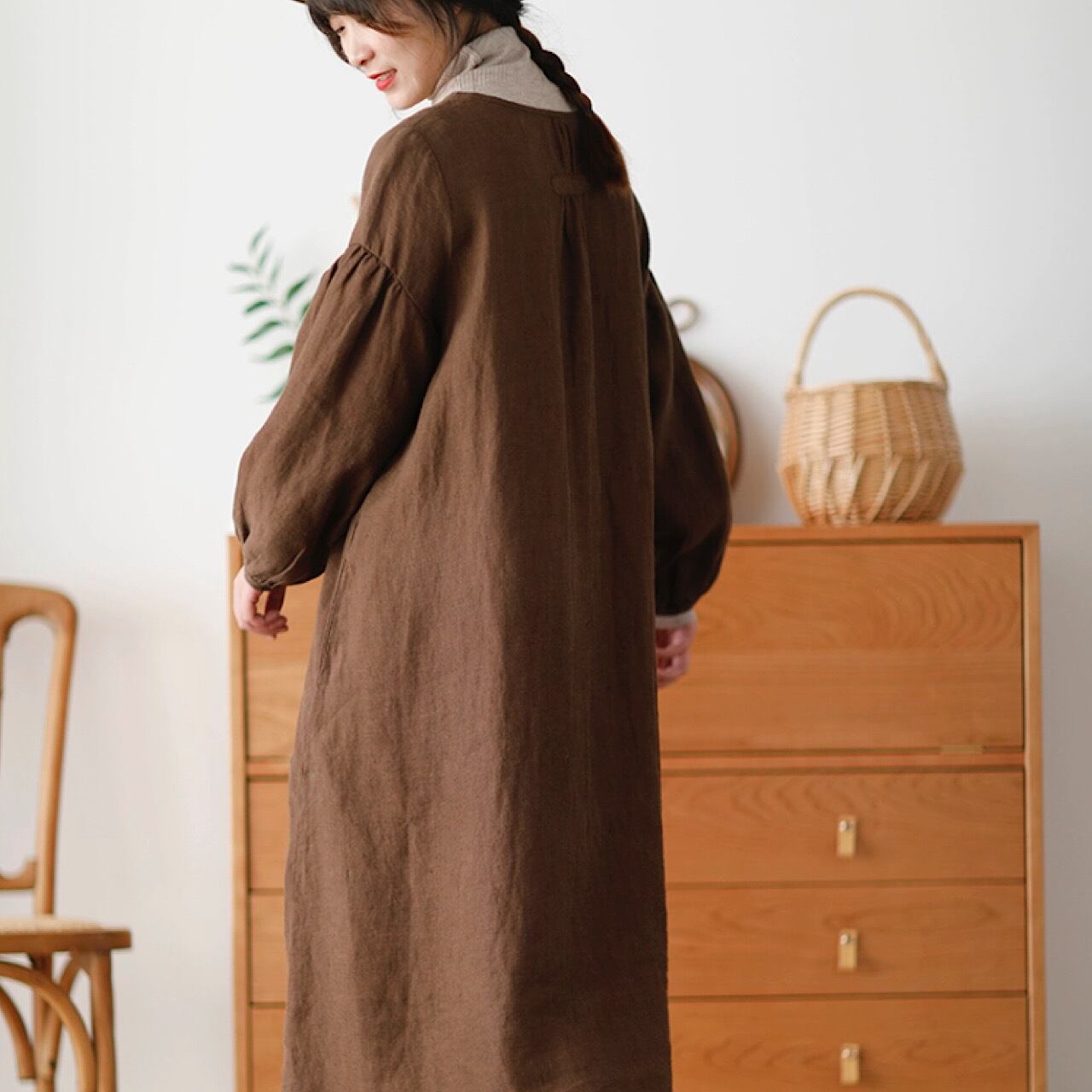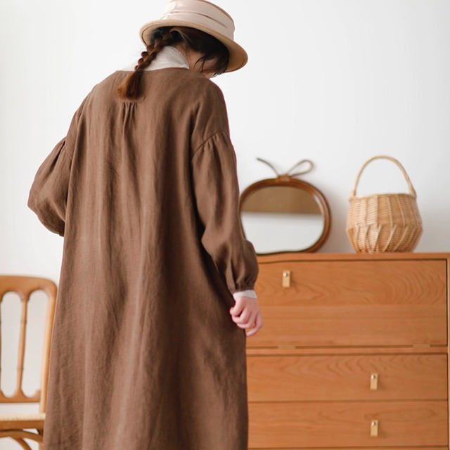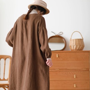厚手 リネンドレス レディー ス 長袖 秋冬 新作 ラウンド ネック ゆったり ロングスカート リネンワンピース きれいめ 大人 おすすめ カジュアル 大きいサイズ 麻 上品 シンプル 着回し 30代 40代 50代 OP-104KMY