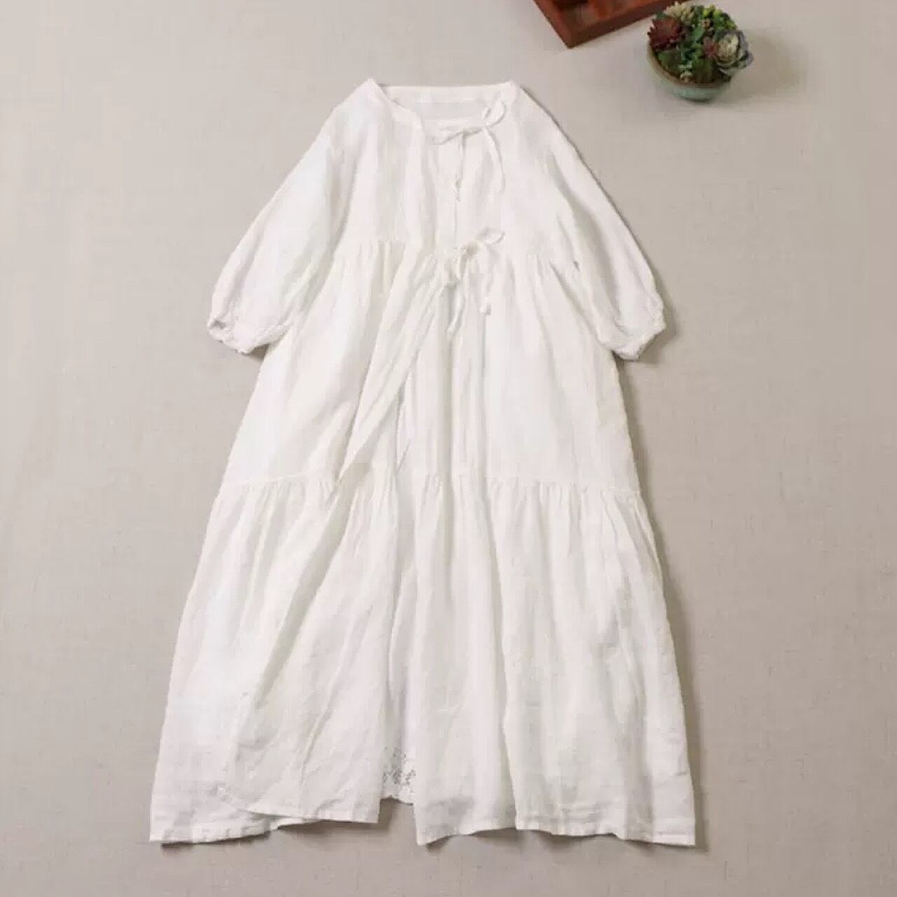 フルリネン七分袖 ドレス ルーズ リネンワンピース きれいめ 大人 おすすめ 長袖 ロング カジュアル レディース 大きいサイズ 麻 上品 ゆったり シンプル 着回し 30代 40代 50代 OP-114KMY