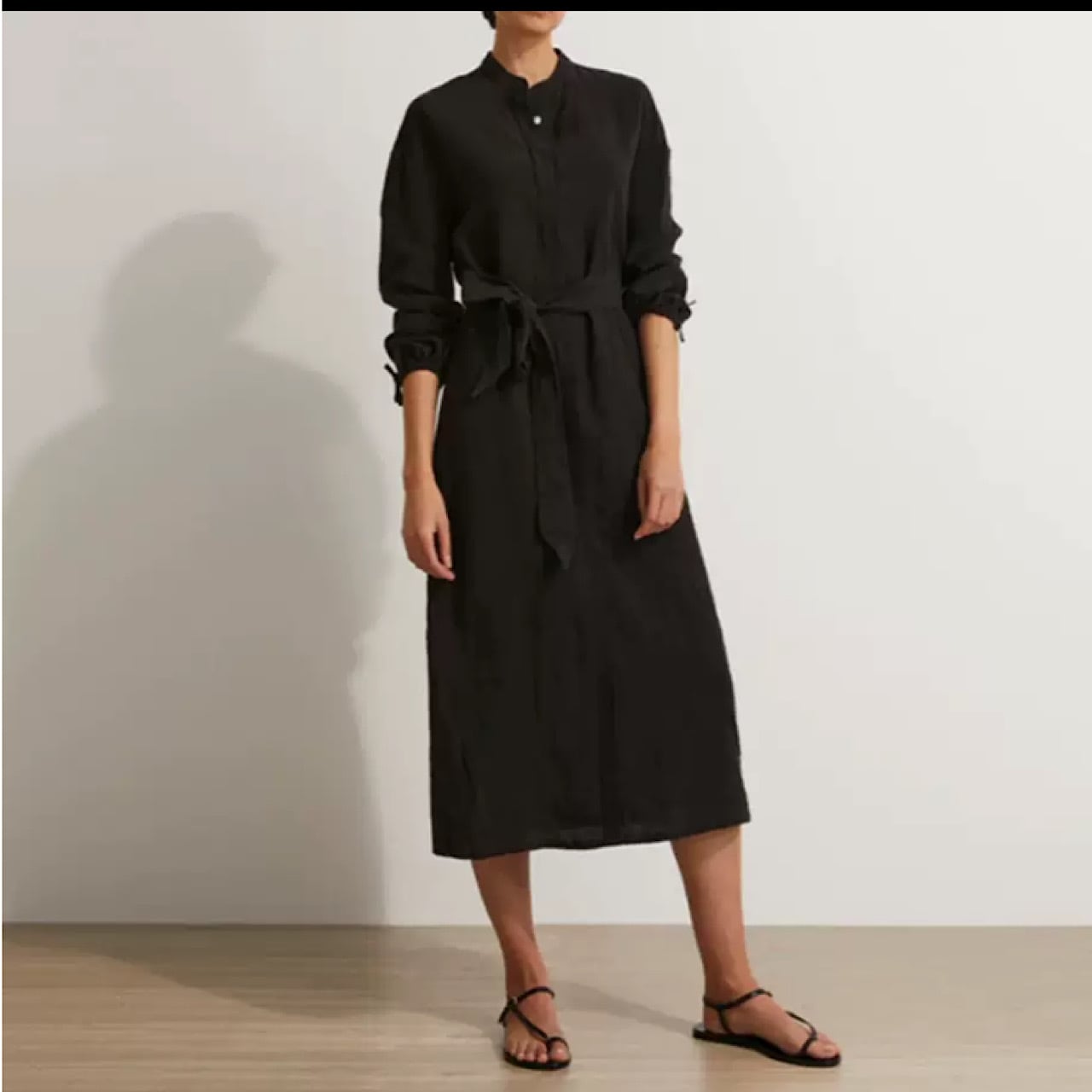 長袖 リネンドレス レトロ ロングスカート 膝丈 リネンワンピース きれいめ 大人 おすすめ カジュアル レディース 大きいサイズ 麻 上品 ゆったり シンプル 着回し 30代 40代 50代 OP-123KMY