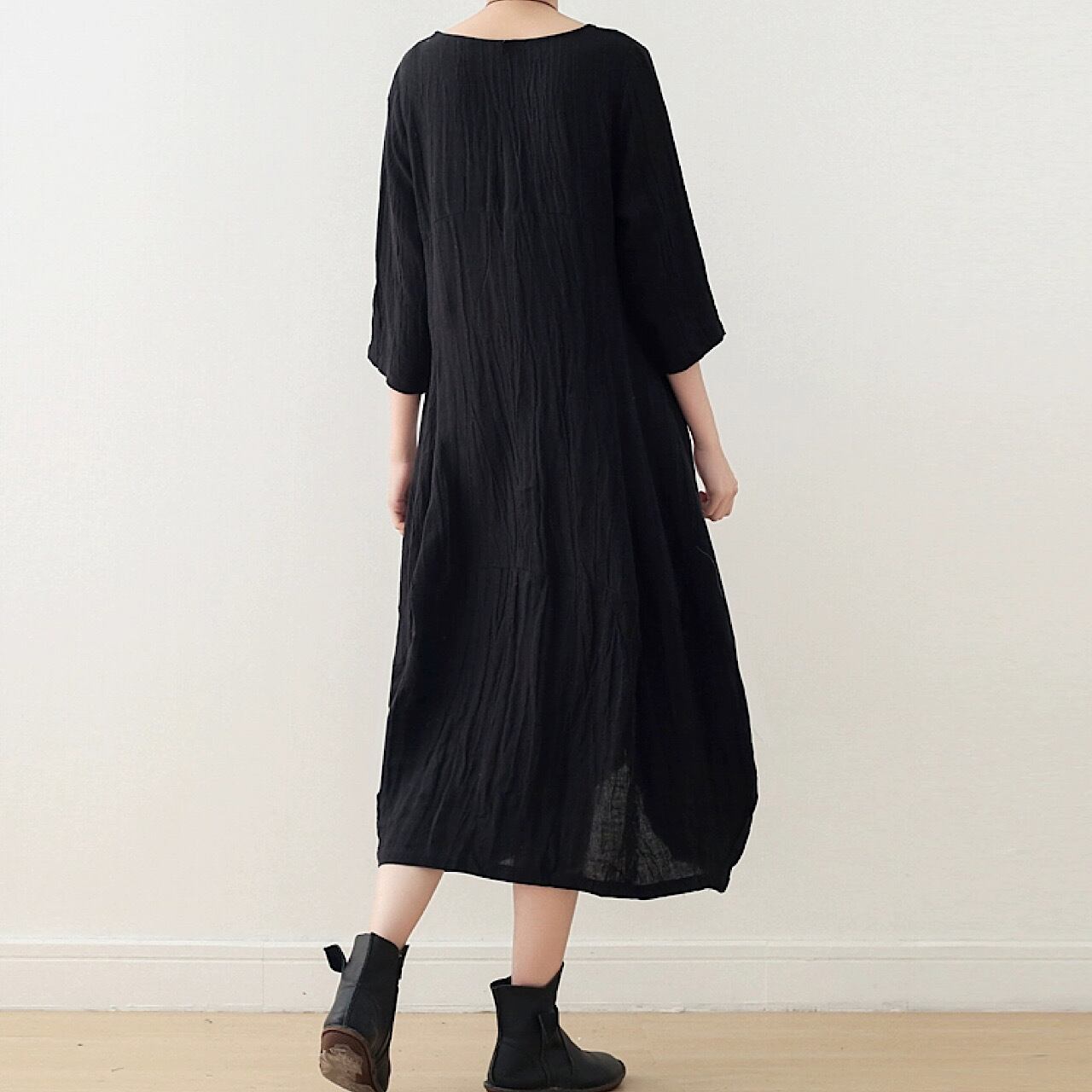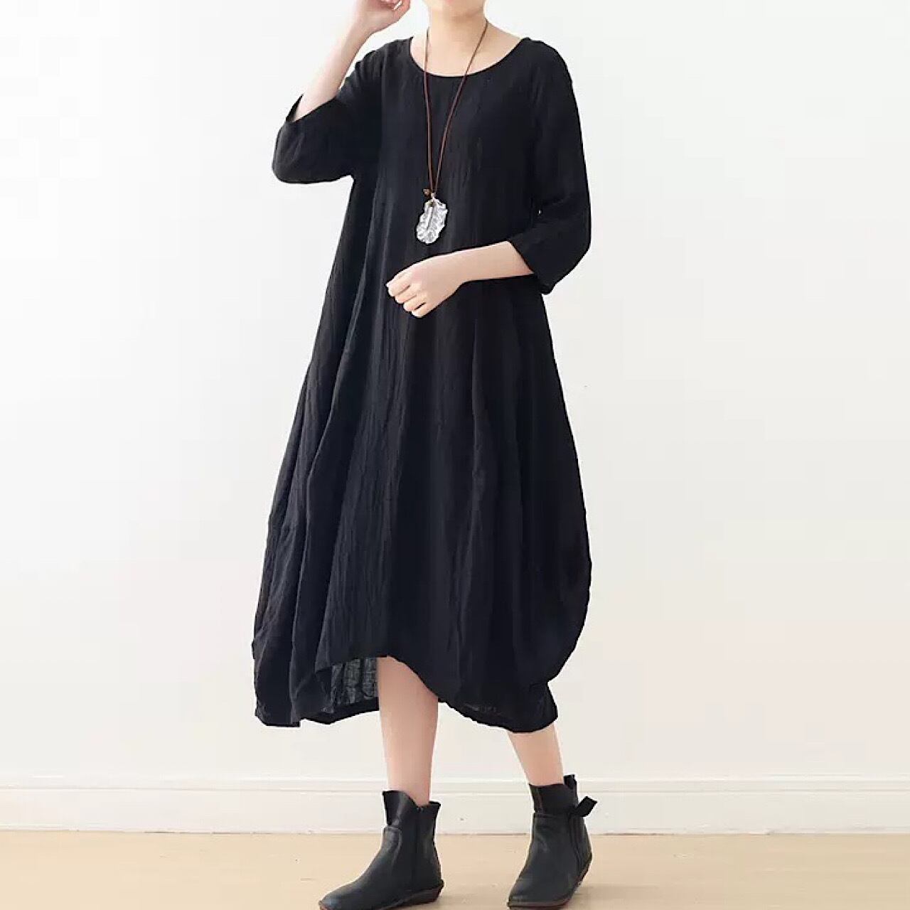 リネンルーズ スイング リネンワンピース きれいめ 大人 七分袖 おすすめ かわいい エレガント フルリネン ロング カジュアル レディース 大きいサイズ 麻 上品 ゆったり シンプル 着回し 30代 40代 50代 OP-136KMY