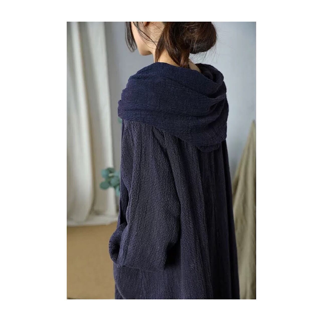 レトロ デザイン 長袖 フード 付き ローブ ドレス リネンワンピース きれいめ 大人 おすすめ かわいい エレガント フルリネン ロング カジュアル レディース 大きいサイズ 麻 上品 ゆったり シンプル 着回し 30代 40代 50代 OP-152KMY