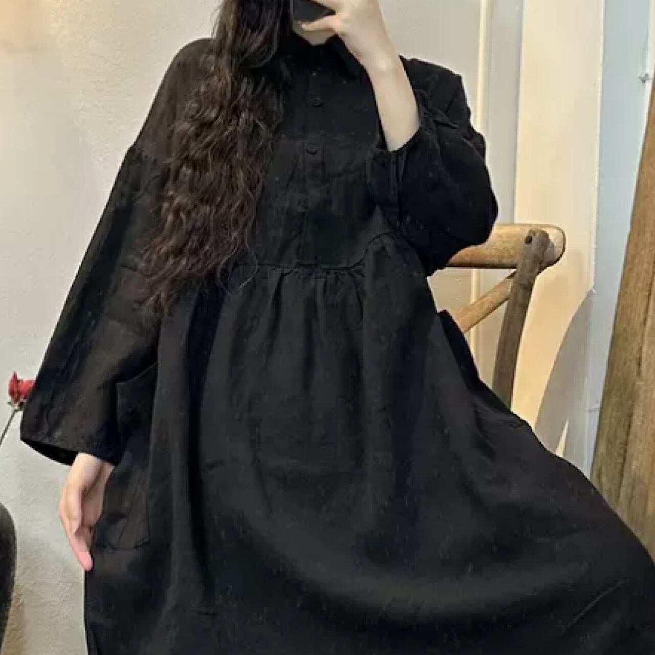 春新作 リネン 大きい バージョン ワンピース ルーズ 長袖 リネンワンピース きれいめ 大人 おすすめ かわいい エレガント フルリネン ロング カジュアル レディース 大きいサイズ 麻 上品 ゆったり シンプル 着回し 30代 40代 50代 OP-162KMY