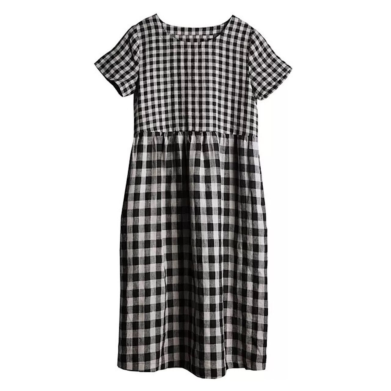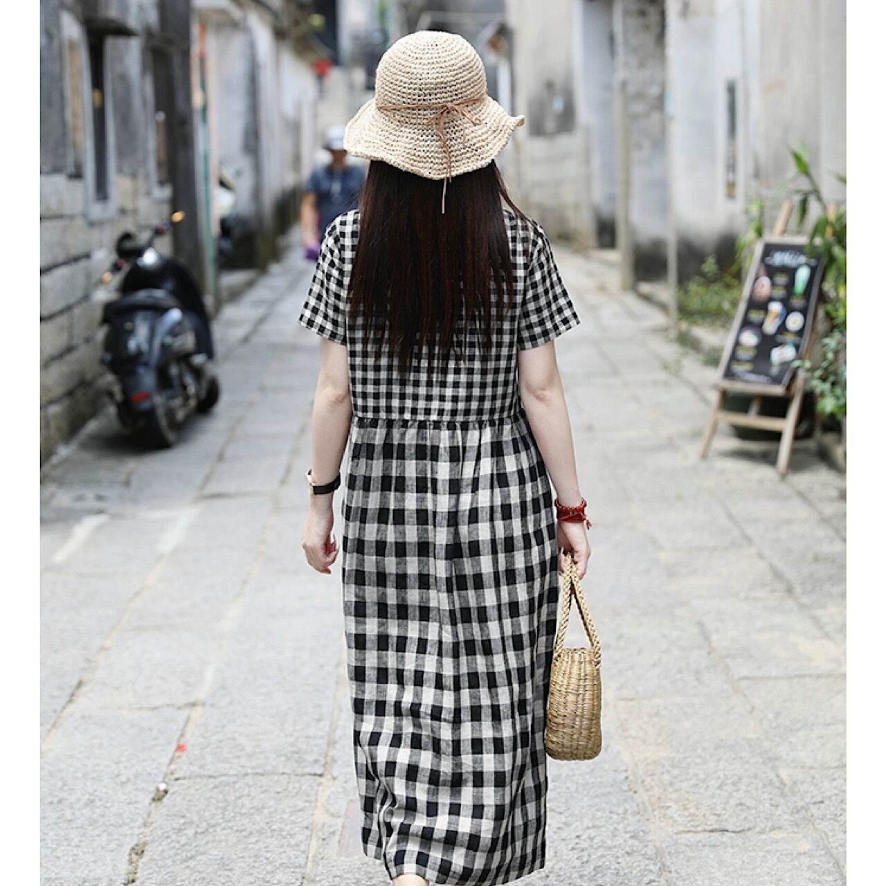 オリジナル アー トチェック柄 半袖 リネン ジャンプ スーツ リネンワンピース きれいめ 大人 おすすめ かわいい エレガント フルリネン ロング カジュアル レディース 大きいサイズ 麻 上品 ゆったり シンプル 着回し 30代 40代 50代 OP-175KMY