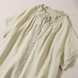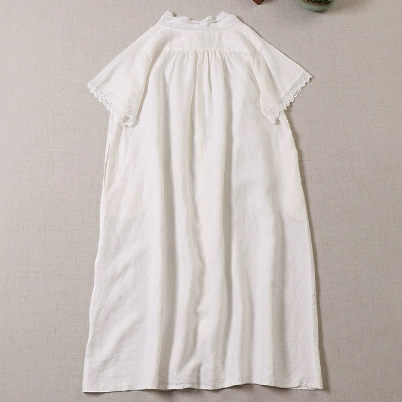 シンプル カラー フルリネン 半袖 レース カラー ロング スカート リネンワンピース きれいめ 大人 おすすめ かわいい エレガント フルリネン ロング カジュアル レディース 大きいサイズ 麻 上品 ゆったり シンプル 着回し 30代 40代 50代 OP-185KMY