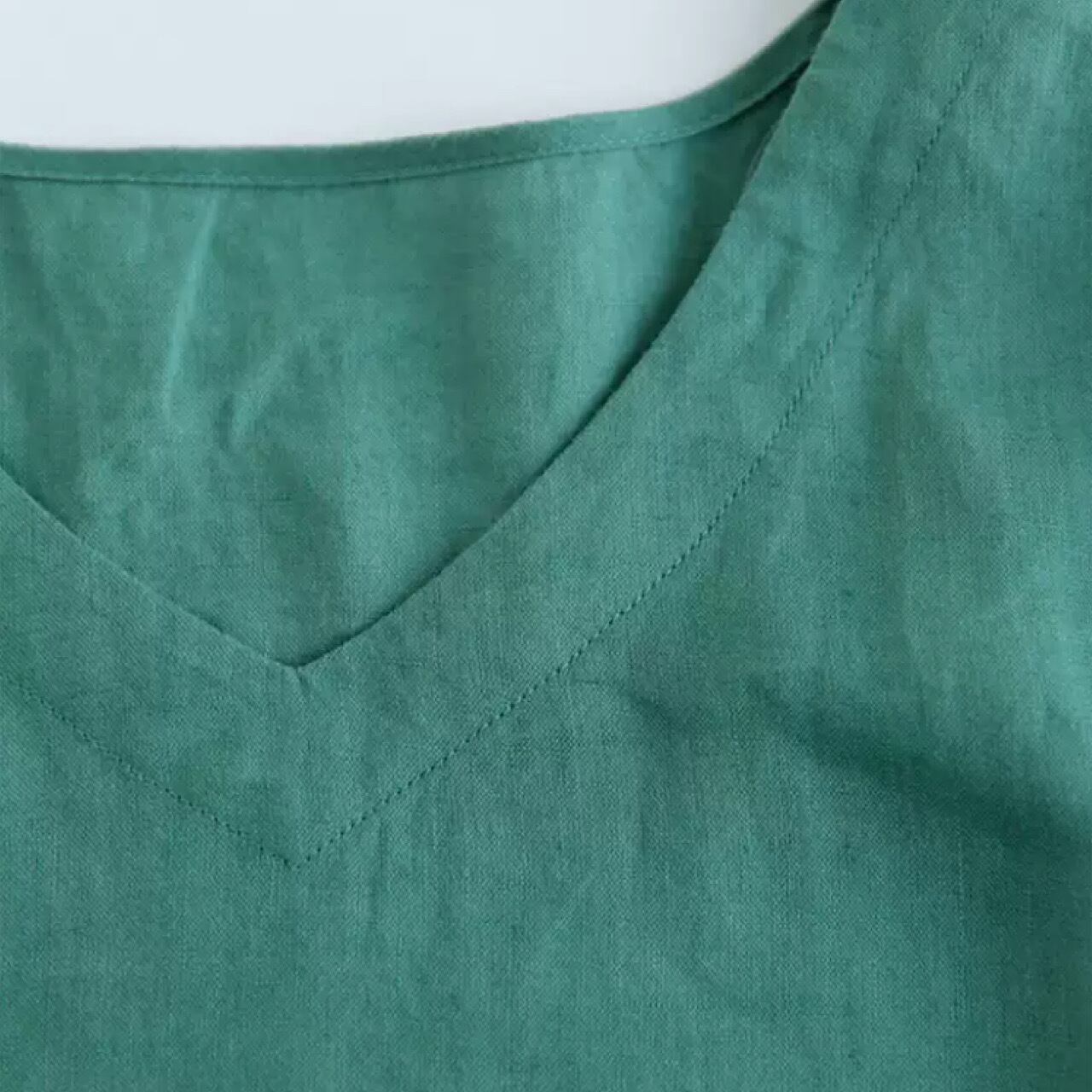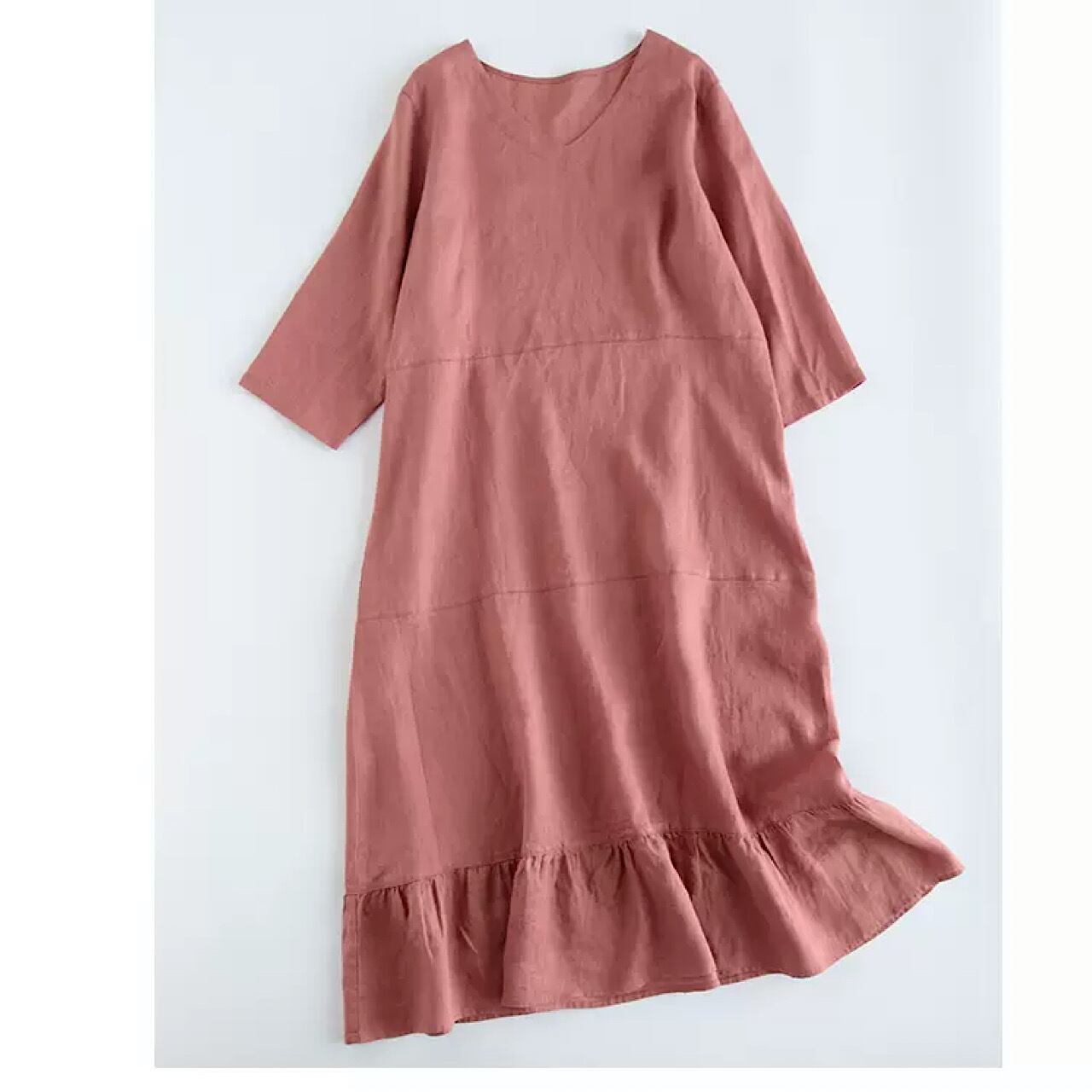 V ネック 半袖 薄手 ピュアリネン フリル ロング スカート リネンワンピース きれいめ 大人 おすすめ かわいい エレガント フルリネン ロング カジュアル レディース 大きいサイズ 麻 上品 ゆったり シンプル 着回し 30代 40代 50代 OP-186KMY