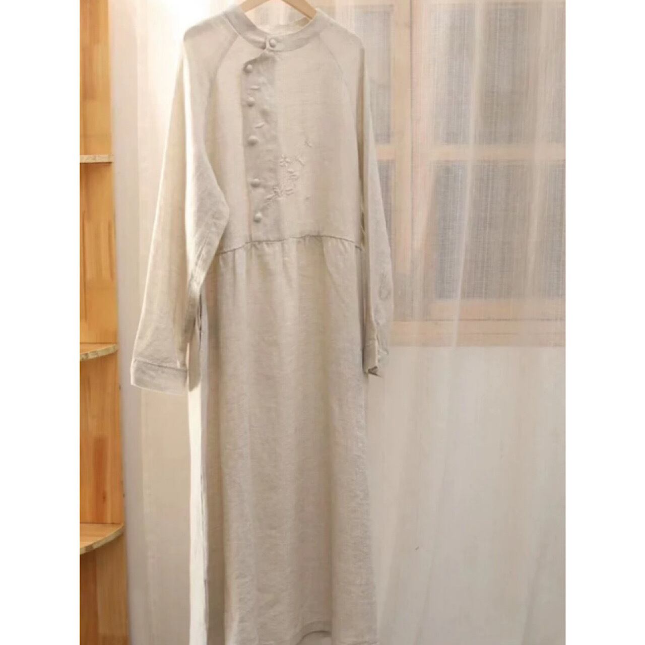 春新作 プルオーバー 長袖 ピュアリネンワンピース きれいめ 大人 おすすめ ロング カジュアル レディース 大きいサイズ 麻 上品 ゆったり シンプル 着回し 30代 40代 50代 OP-214KMY