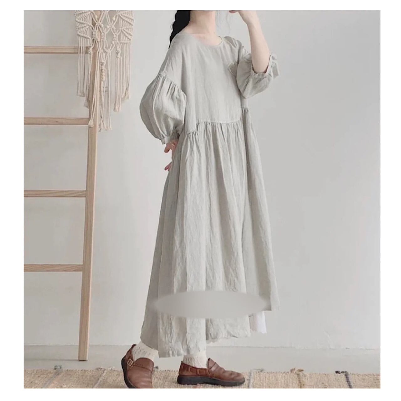 ルーズ ドレスガウン 長袖 ピュアリネンワンピース きれいめ 大人 おすすめ ロング カジュアル レディース 大きいサイズ 麻 上品 ゆったり シンプル 着回し 30代 40代 50代 OP-216KMY