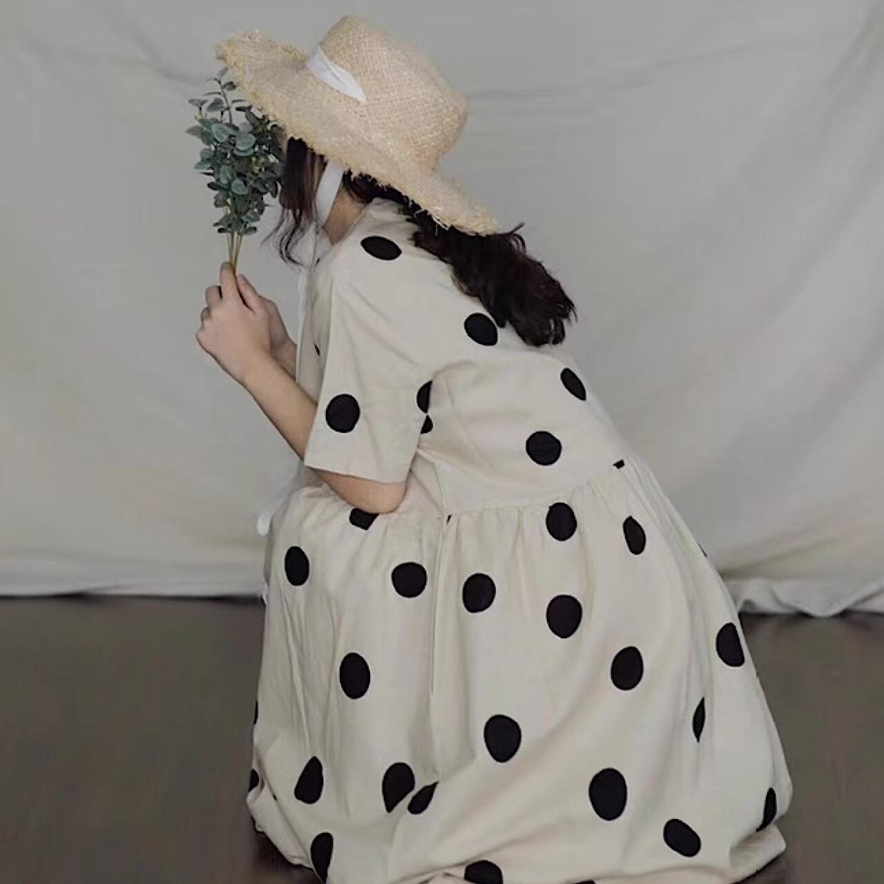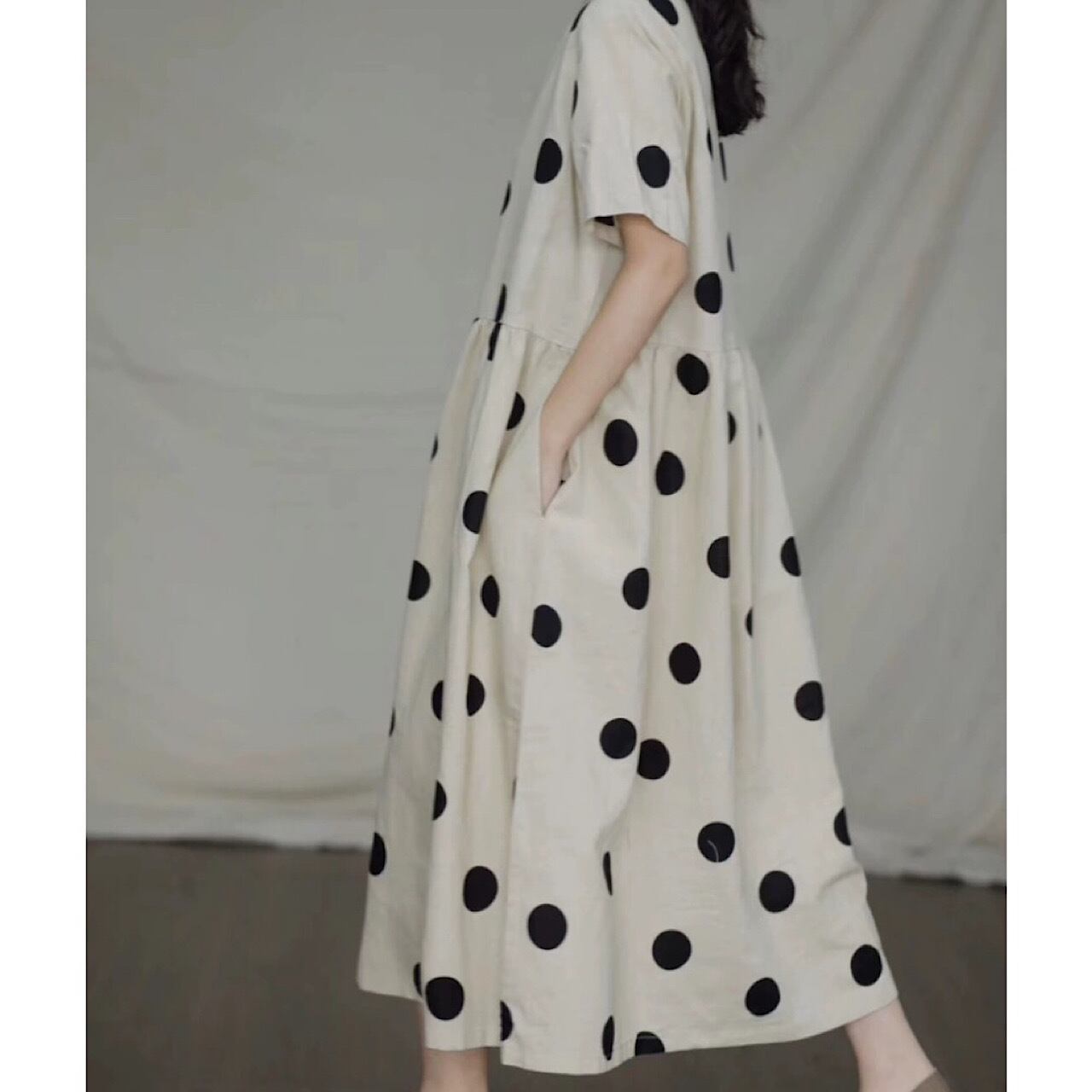薄手 夏らしい ゆったり 半袖 水玉 ピュアリネンワンピース きれいめ 大人 おすすめ ロング カジュアル レディース 大きいサイズ 麻 上品 シンプル 着回し 30代 40代 50代 OP-230KMY