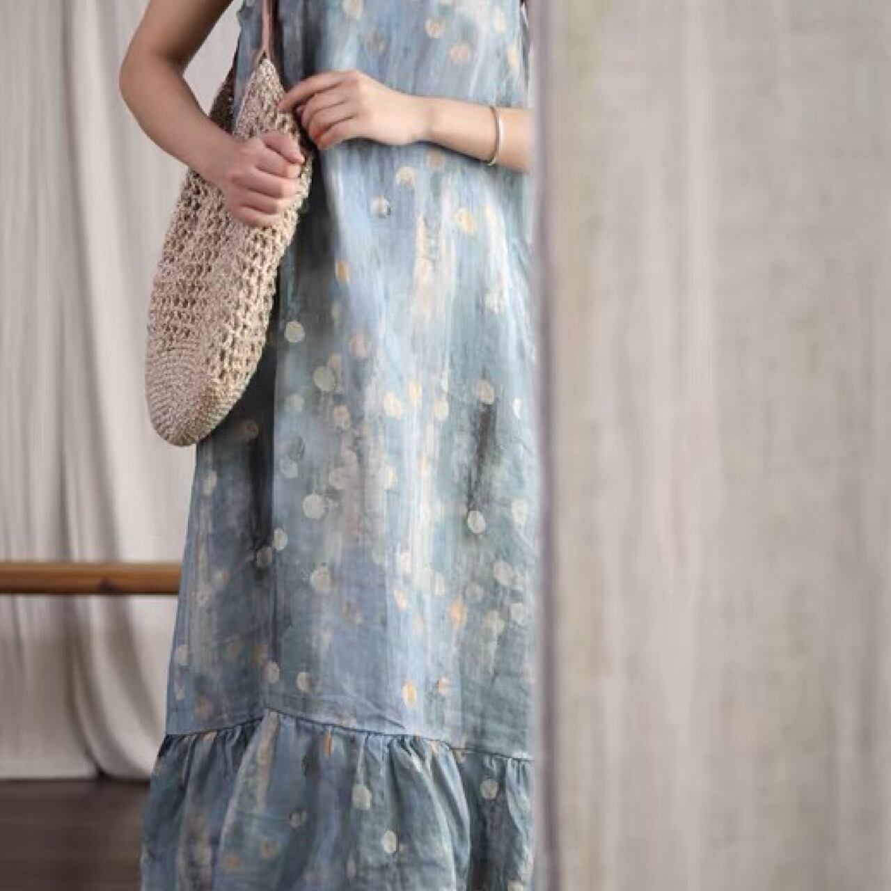 オリジナル デザイン ノースリーブ キャミソール アート ベース ブラック ピュアリネンワンピース きれいめ 大人 おすすめ ロング カジュアル レディース 大きいサイズ 麻 上品 ゆったり シンプル 着回し 30代 40代 50代 OP-234KMY