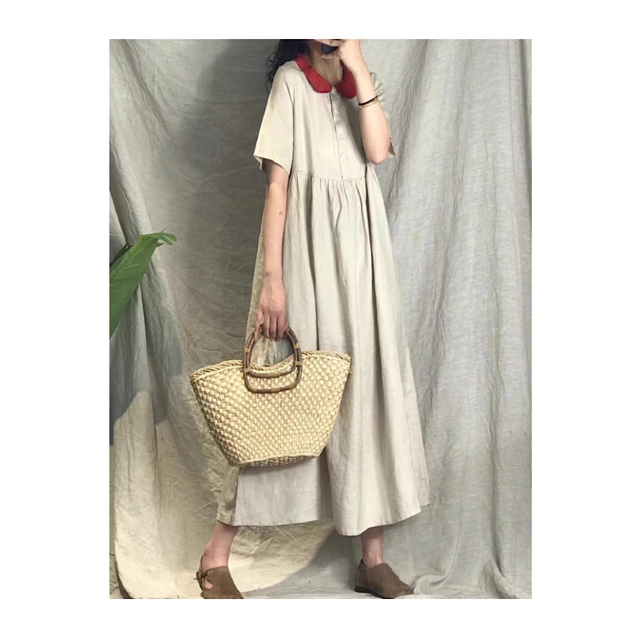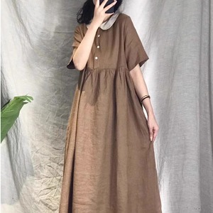 ドレスカラー プルオーバー 半袖 ピュアリネンワンピース きれいめ 大人 おすすめ ロング カジュアル レディース 大きいサイズ 麻 上品 ゆったり シンプル 着回し 30代 40代 50代 OP-236KMY