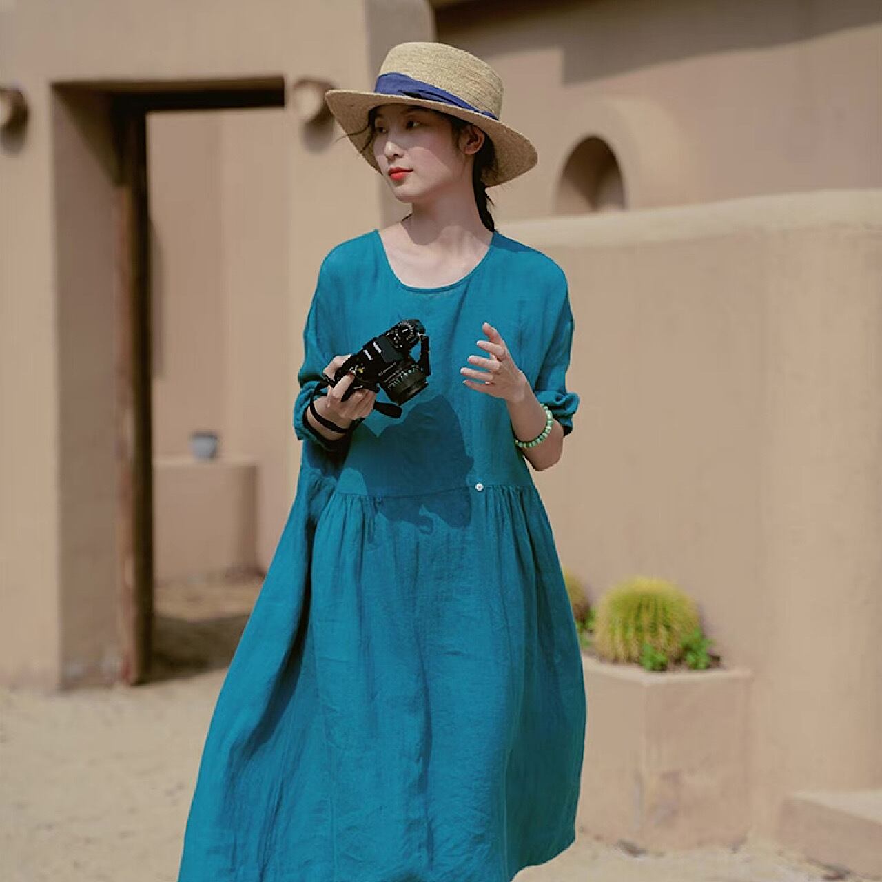 ハイエンド リネン レディース ロング スカート 半袖 ピュアリネンワンピース きれいめ 大人 おすすめ カジュアル 大きいサイズ 麻 上品 ゆったり シンプル 着回し 30代 40代 50代 OP-242KMY