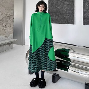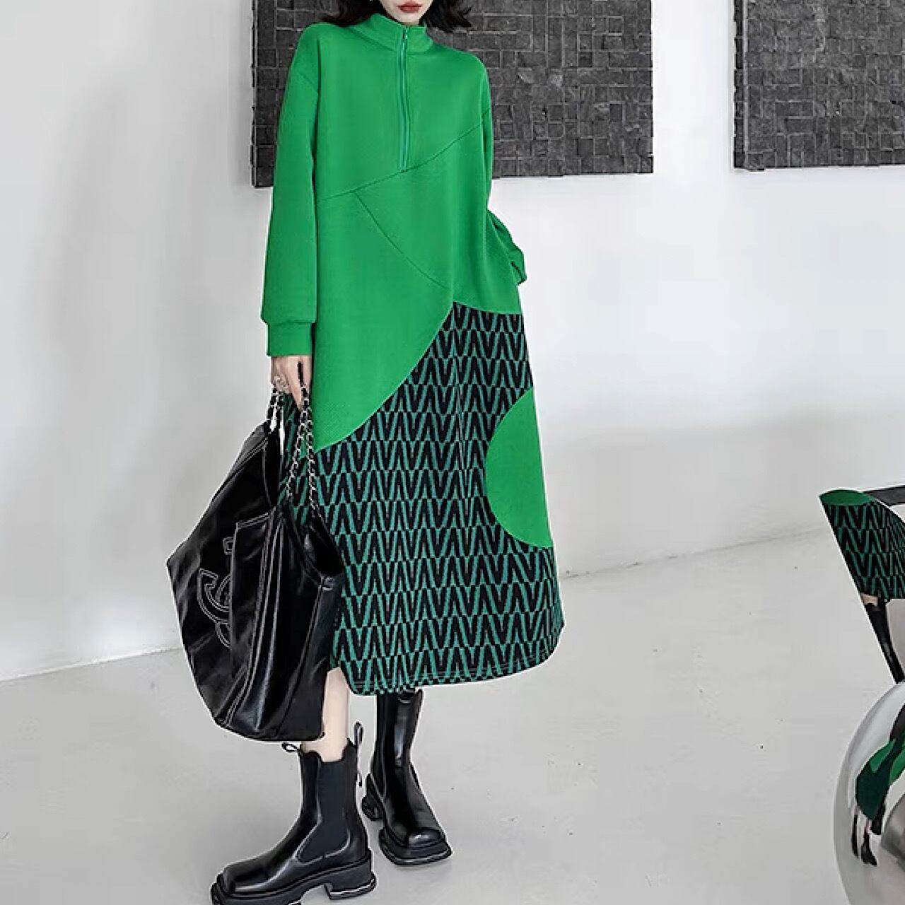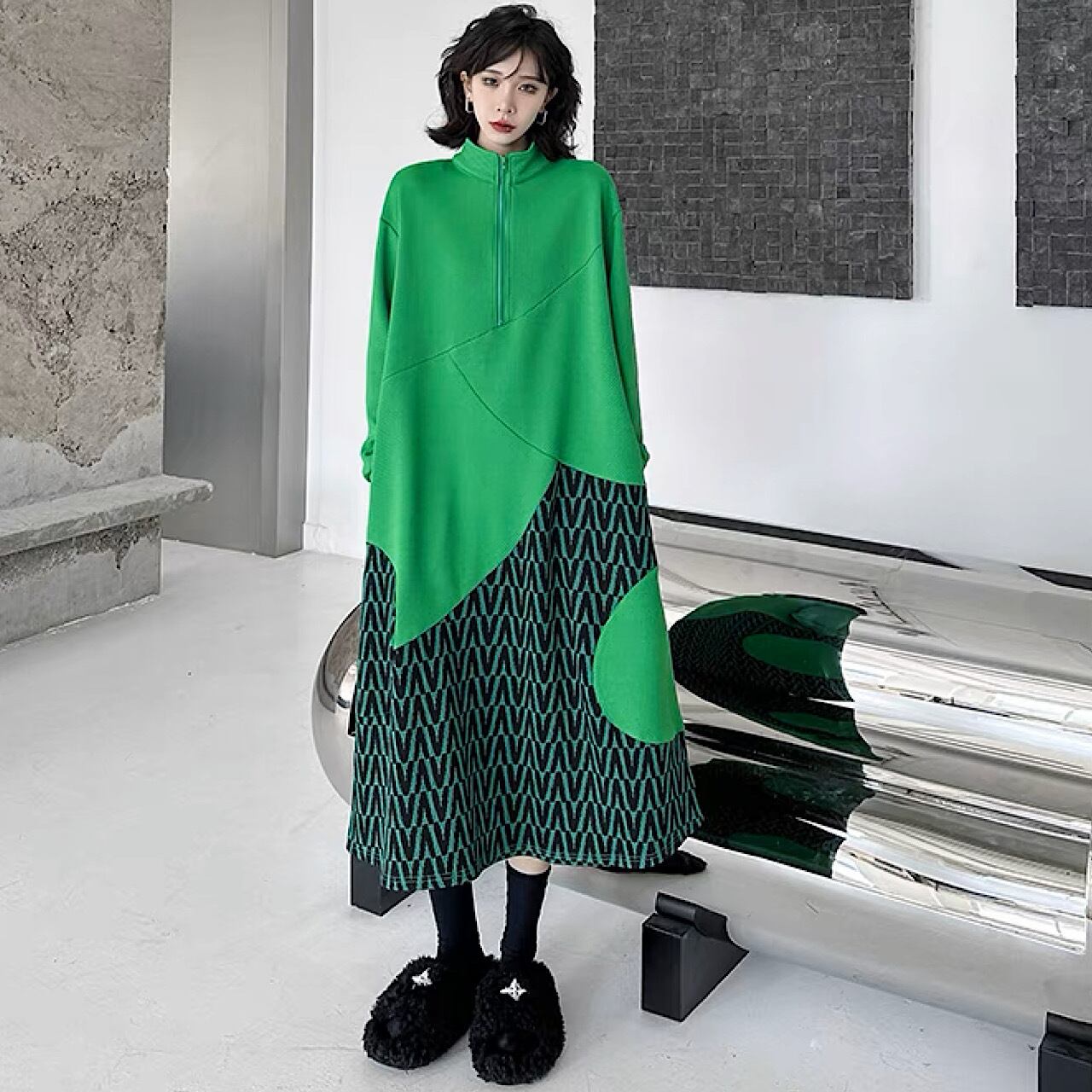 春新作 スタンドカラー プルオーバー ワンピース ファッション ロング 配色 Aラインスカート ドレス 長袖 きれいめ 大きいサイズ かわいい 黒 春冬 シンプル レディース 韓国 カジュアル 大人 レトロ 30代 40代 50代 OP-250KMY