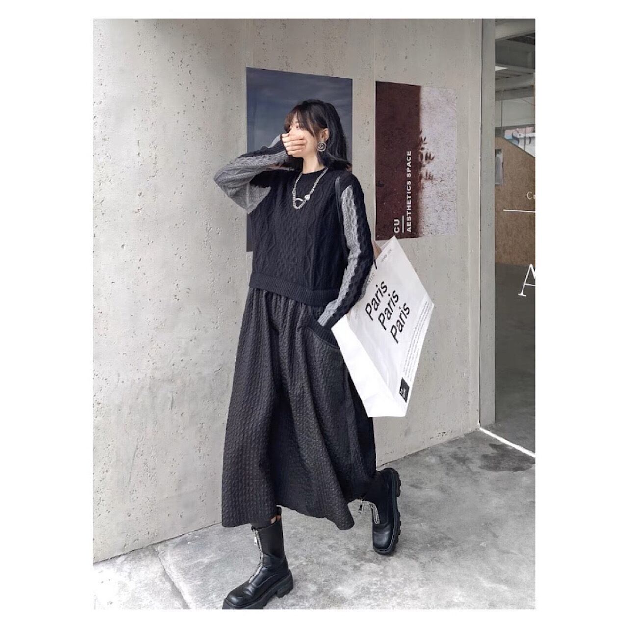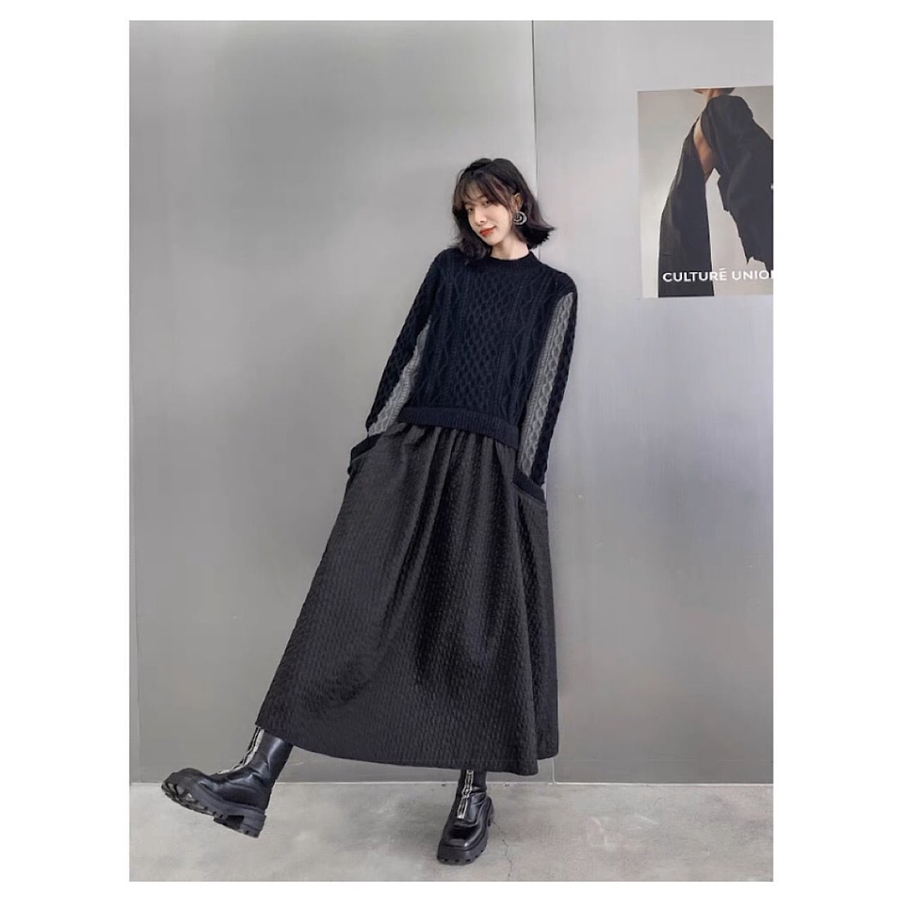 新作 スリム ステッチ ニット ロング スカート ワンピース ドレス 長袖 きれいめ aライン 大きいサイズ かわいい 黒 春冬 シンプル レディース 韓国 カジュアル 大人 レトロ 30代 40代 50代 OP-252KMY