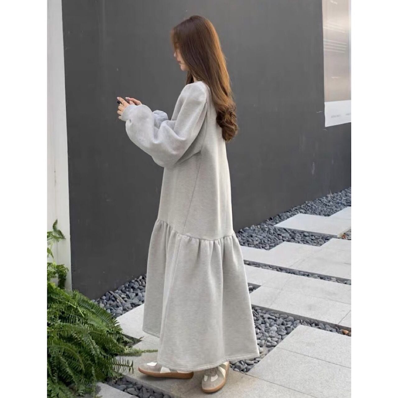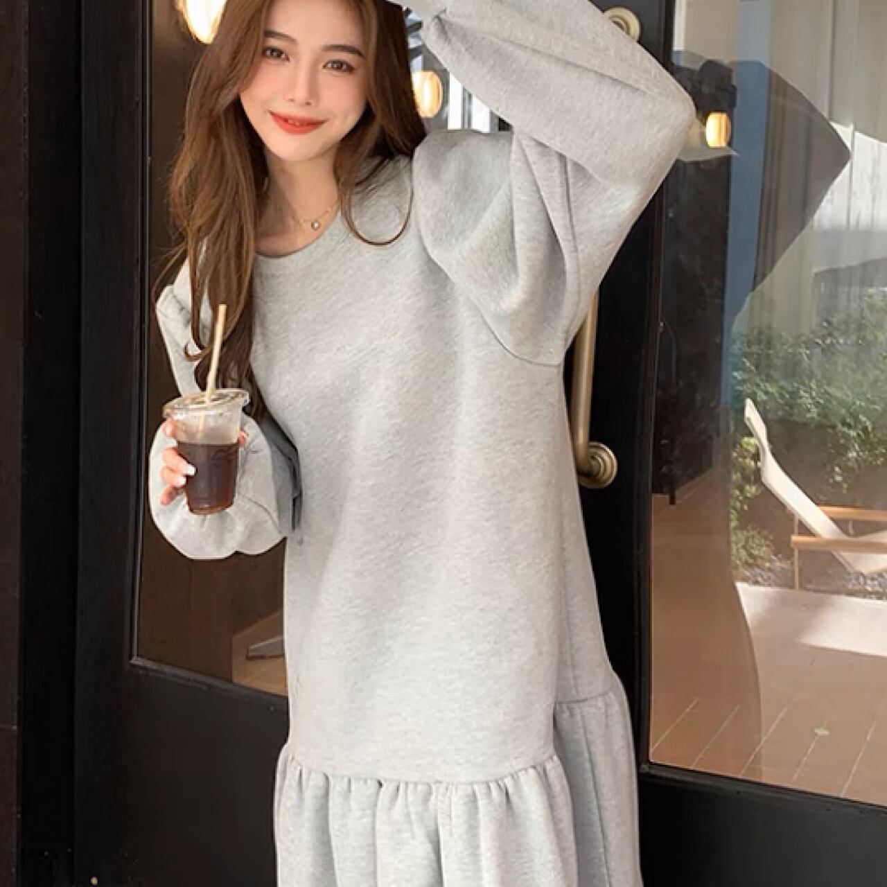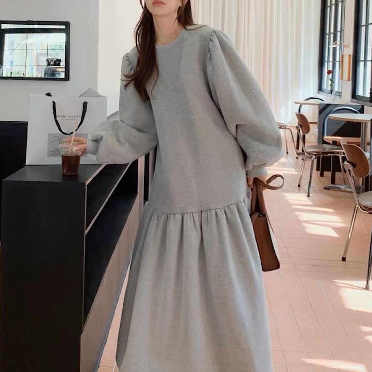 セーター ドレス プラス ベルベット オーバー 膝 ルー ズ スカート ワンピース ドレス 長袖 きれいめ aライン ロング 大きいサイズ かわいい 春冬 シンプル レディース 韓国 カジュアル 大人 レトロ 30代 40代 50代 OP-255KMY