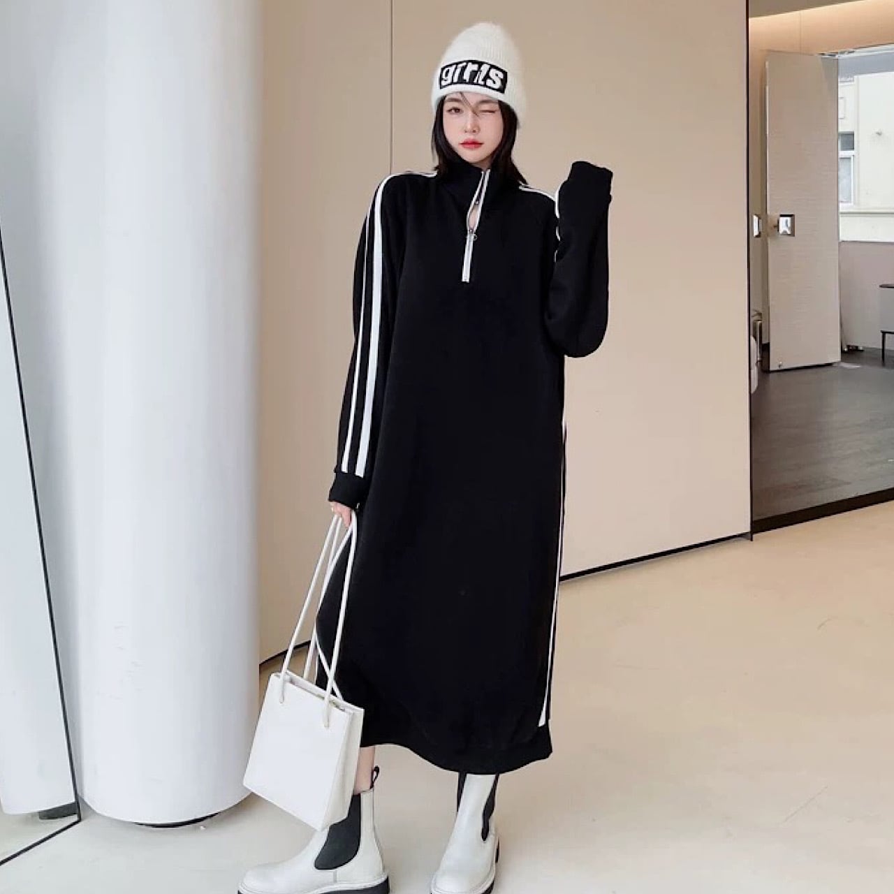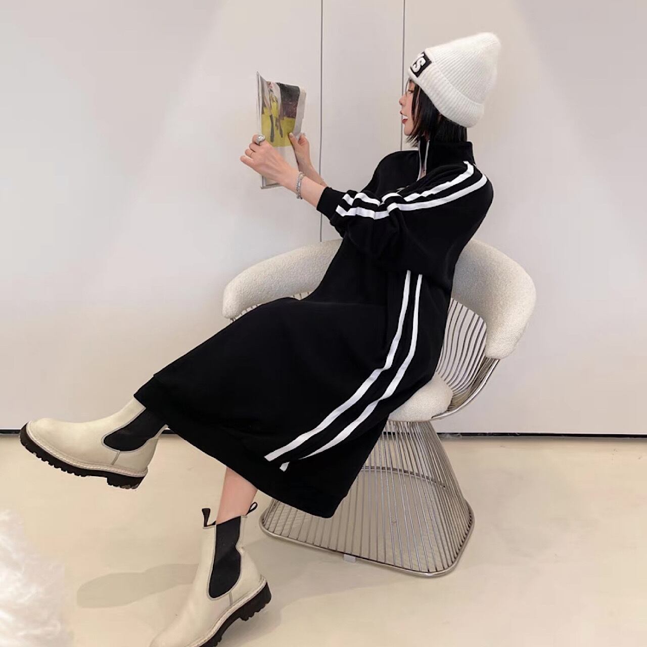 春 新作 ゆったり スリム ハーフ ハイカラー 長袖 ワンピース ドレス きれいめ ロング 大きいサイズ かわいい 黒 シンプル レディース 韓国 カジュアル 大人 レトロ 30代 40代 50代 OP-259KMY